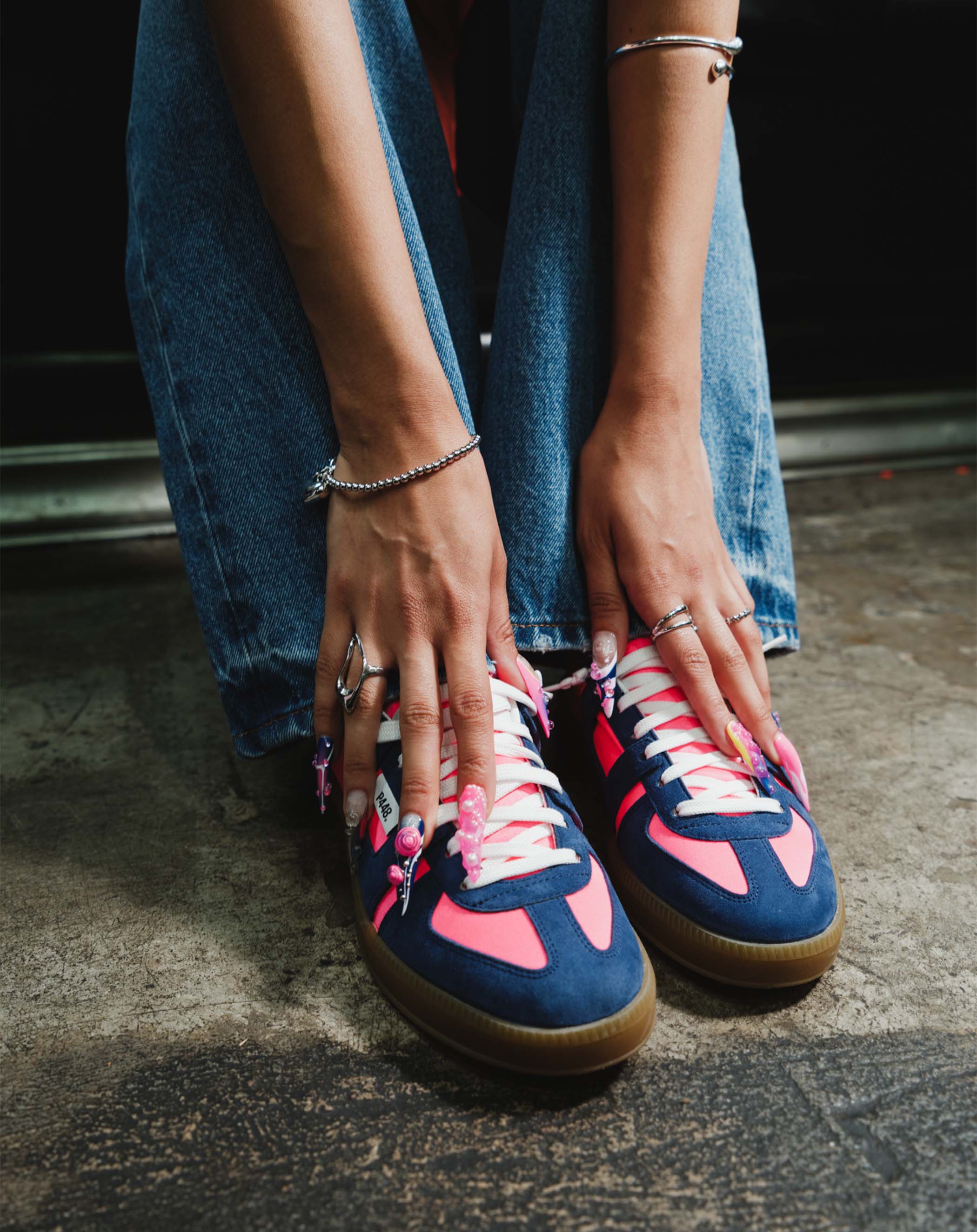 Inspired by expressive art forms, our Aura Collection takes a nod from the history of nail art as an evolving personal style medium. From ancient cultures to streetwear icons, Olympians, musicians, and creative communities, unique nails have always been an extension of style. At P448, sneakers are our nail art—a way to embrace who we are through what we wear…and lace up in.