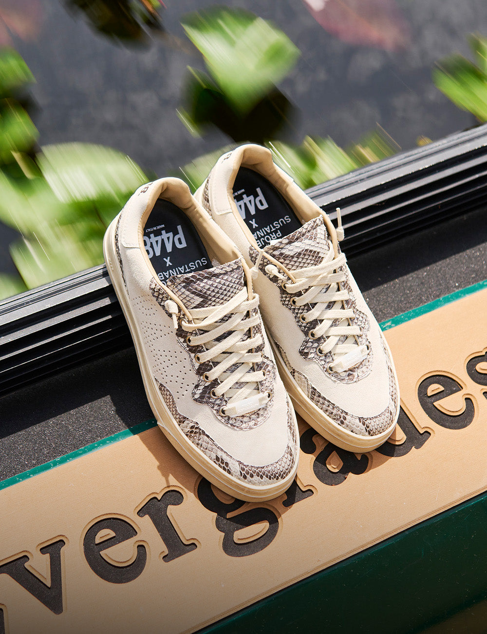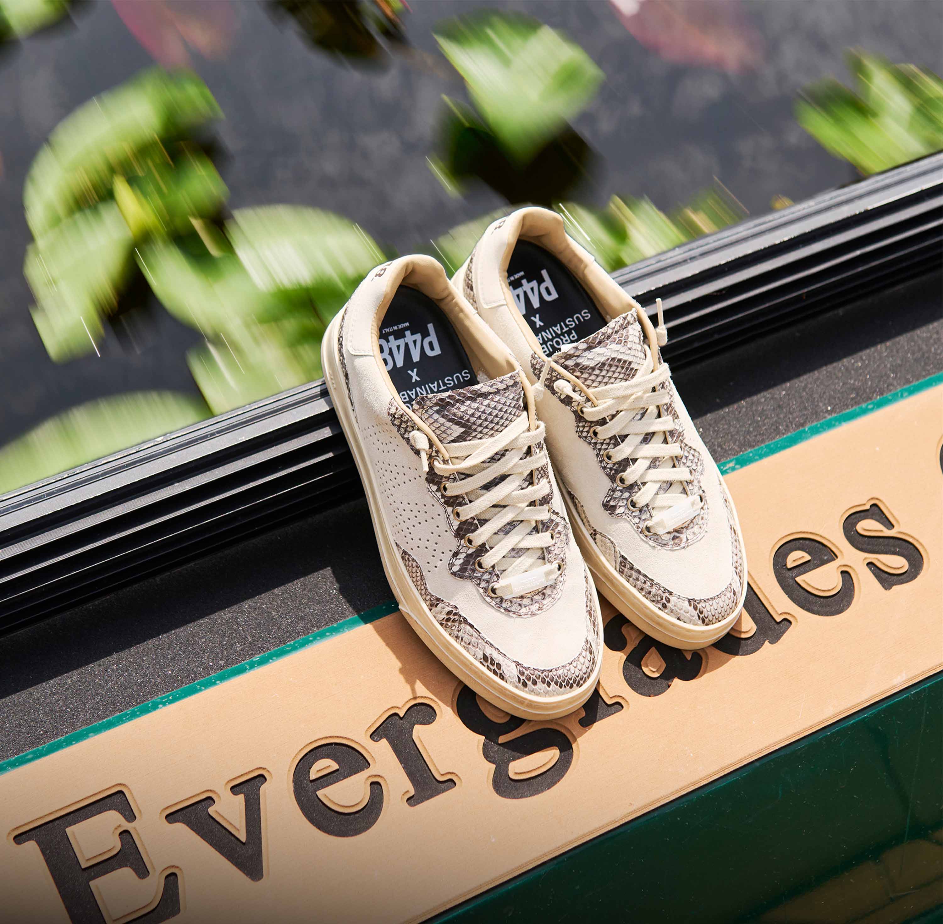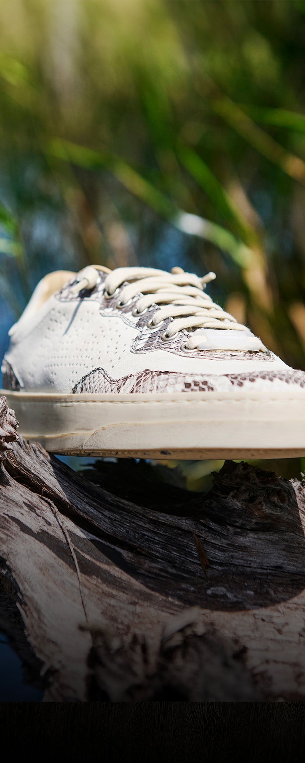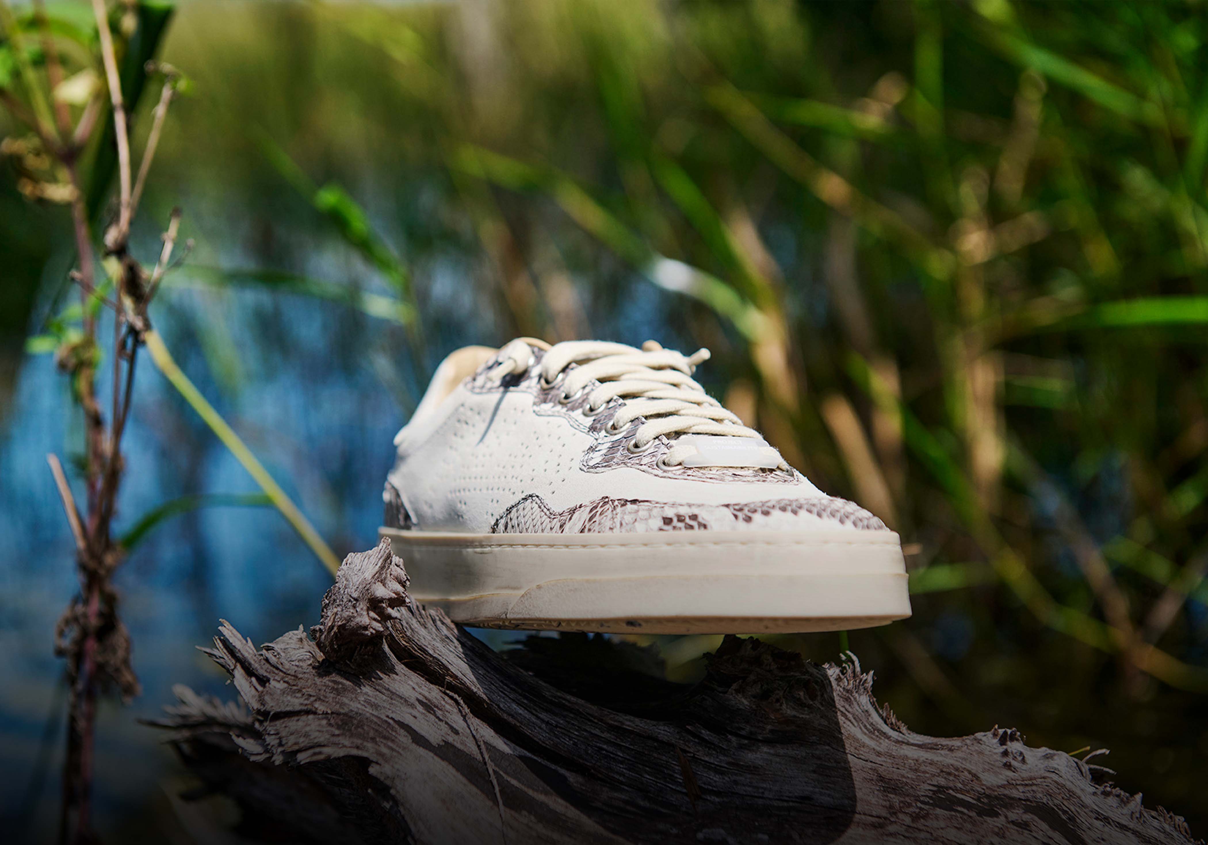 The first-to-market line of sneakers with accent leathers crafted from repurposed invasive species, including Florida Burmese pythons, carp fish and lionfish.