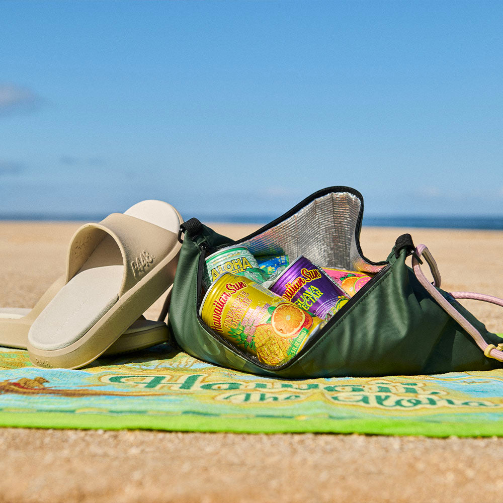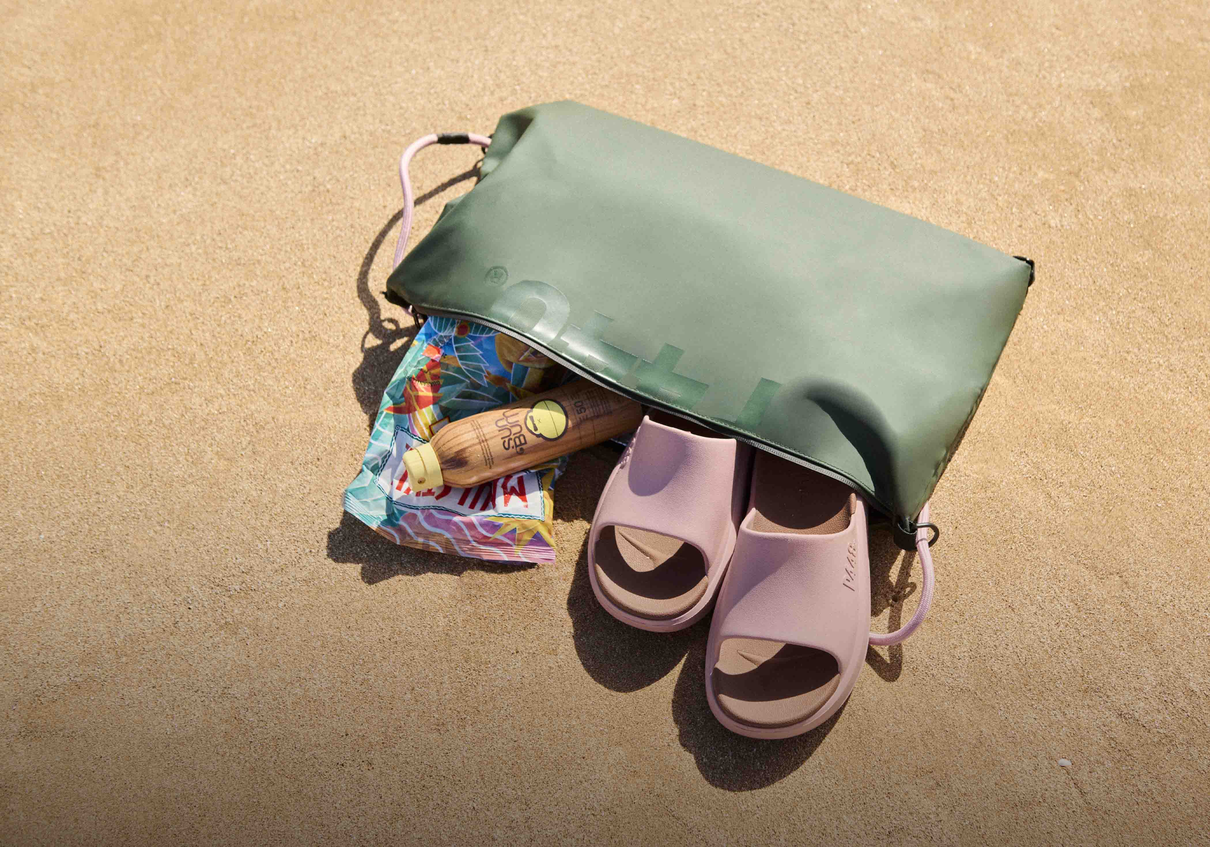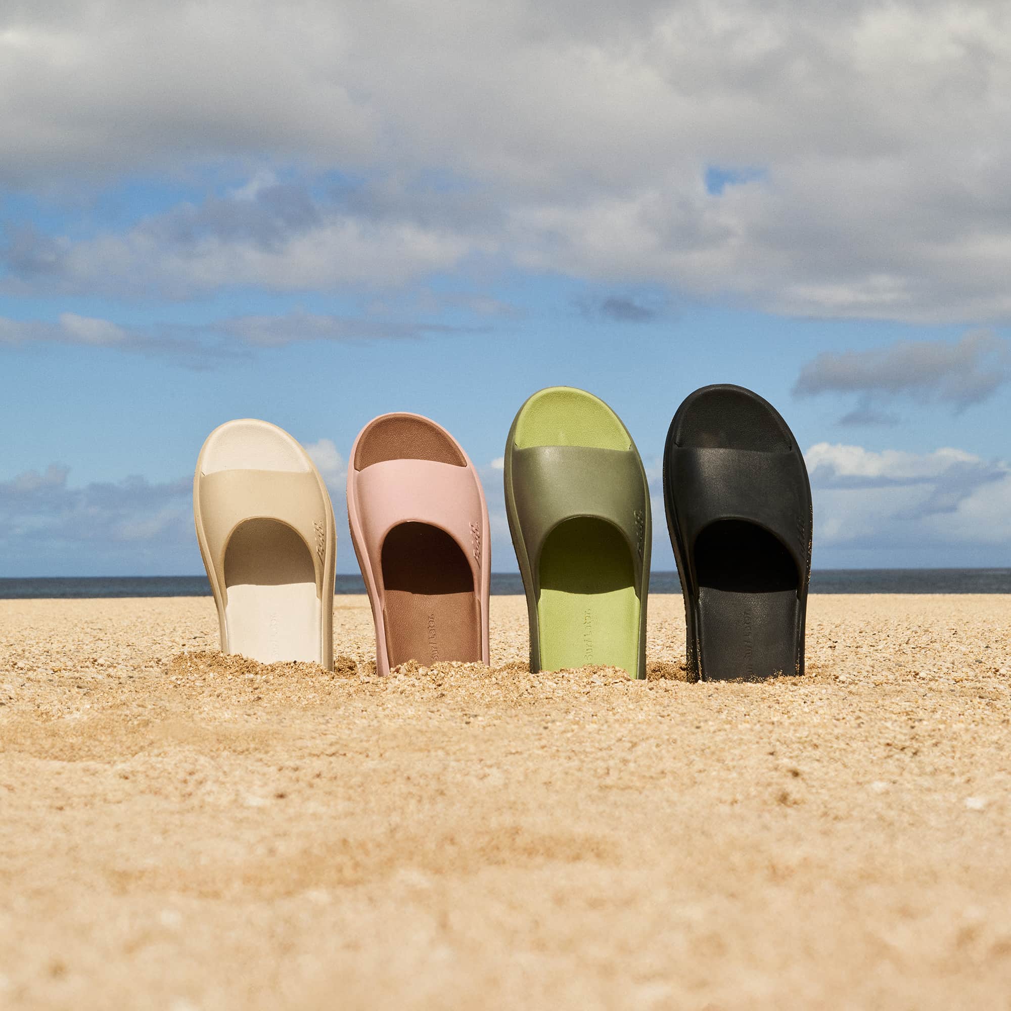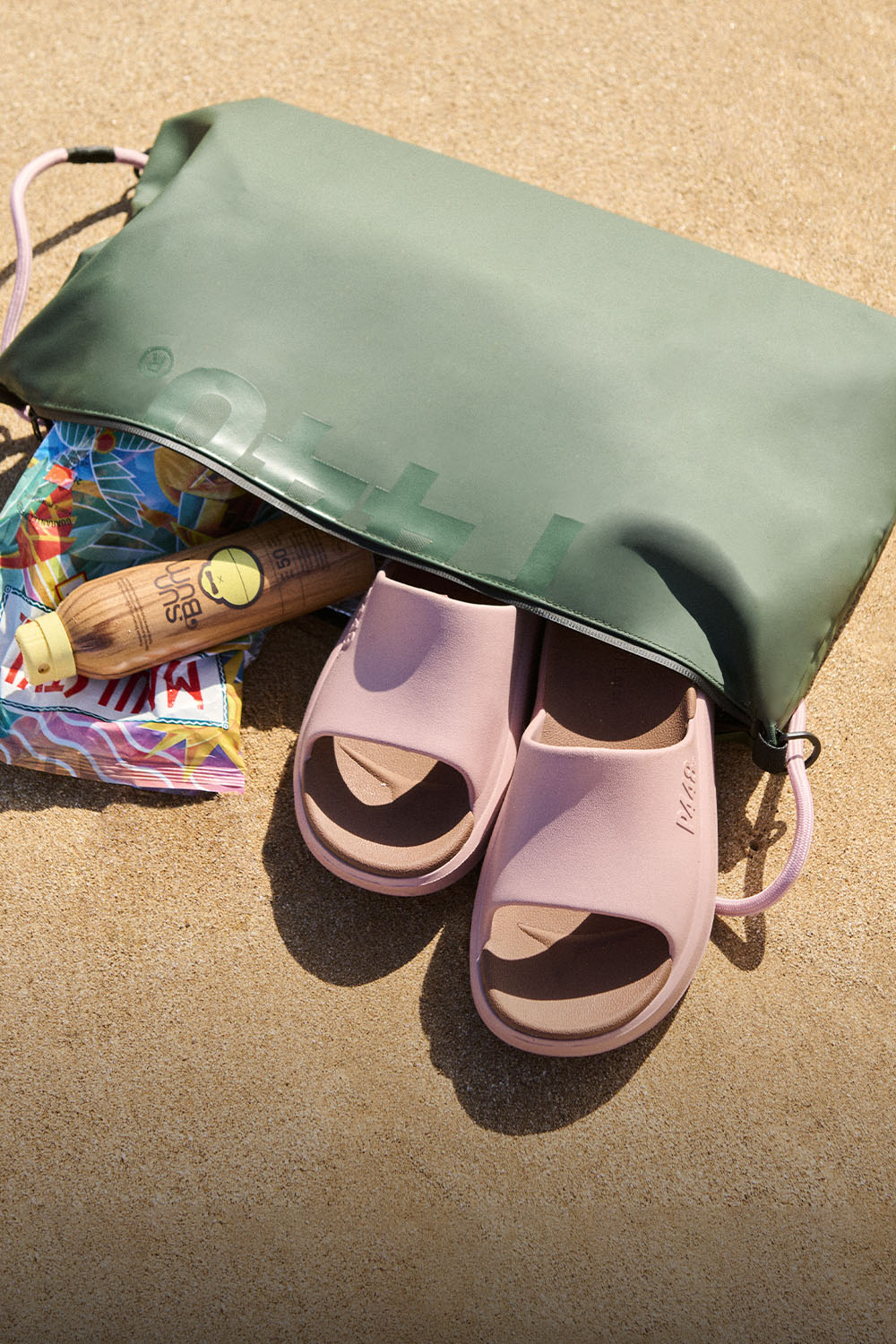 Our slide features an olive green rubber design crafted with a light green anatomic BLOOM footbed and an olive green high-density BLOOM outsole. The recycled non-slip rubber tread makes them the perfect warm-weather adventure sandal—plus, this pair comes packed in a water-resistant cooler bag with a bottle opener carabiner.