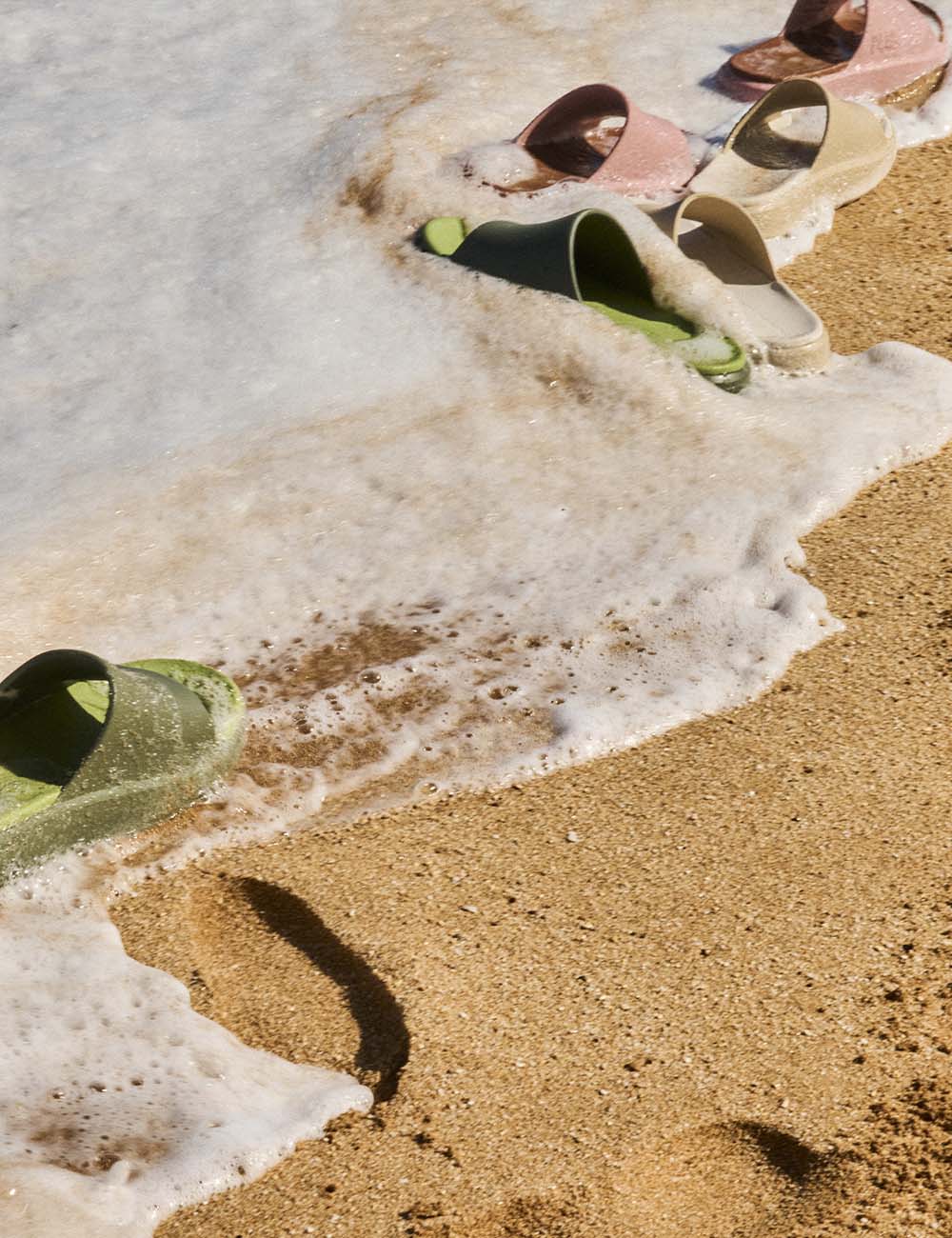 By removing over-abundant and harmful algae from fresh water ponds, we’re contributing to cleaner water, cleaner air and now, cleaner footwear. These effortless slides are crafted with algae-blended soles that reduce the need for fossil fuel-based materials. Each pair puts 108 liters of clean water back in its habitat, cleans 112 cubic meters of air and captures 81 grams of carbon dioxide. Riviera doesn’t just look good—it does good.