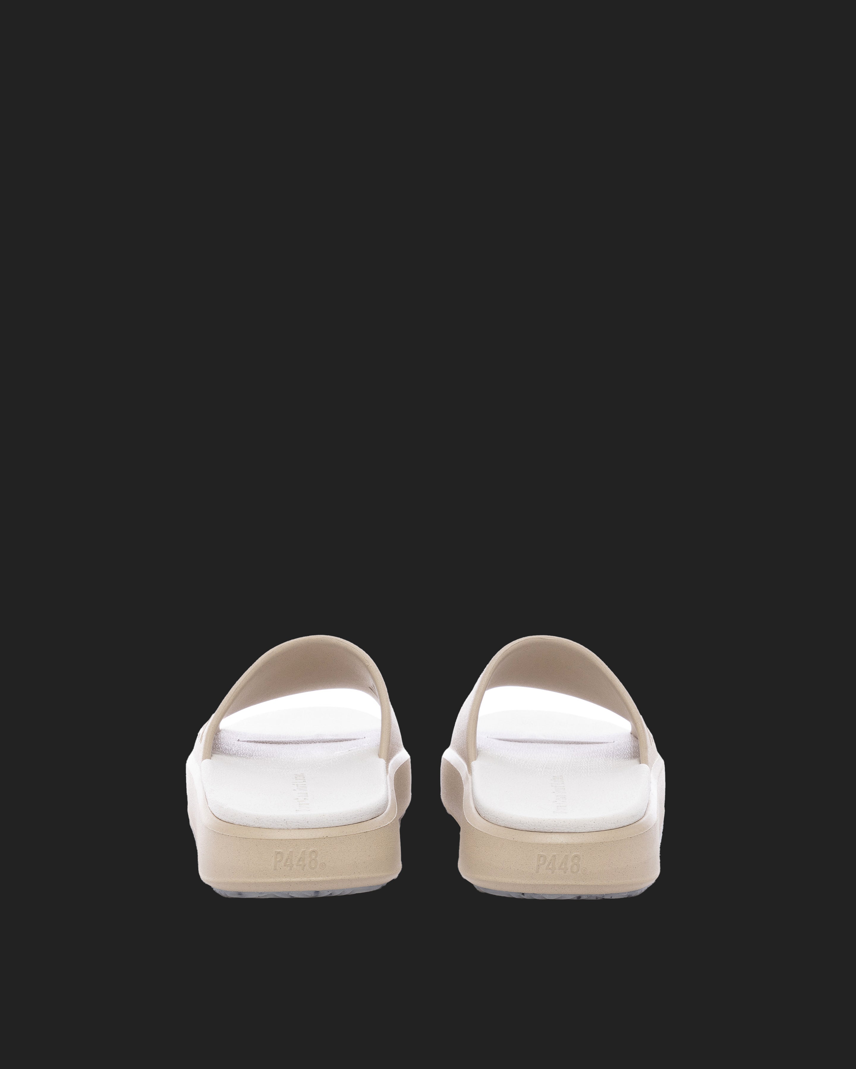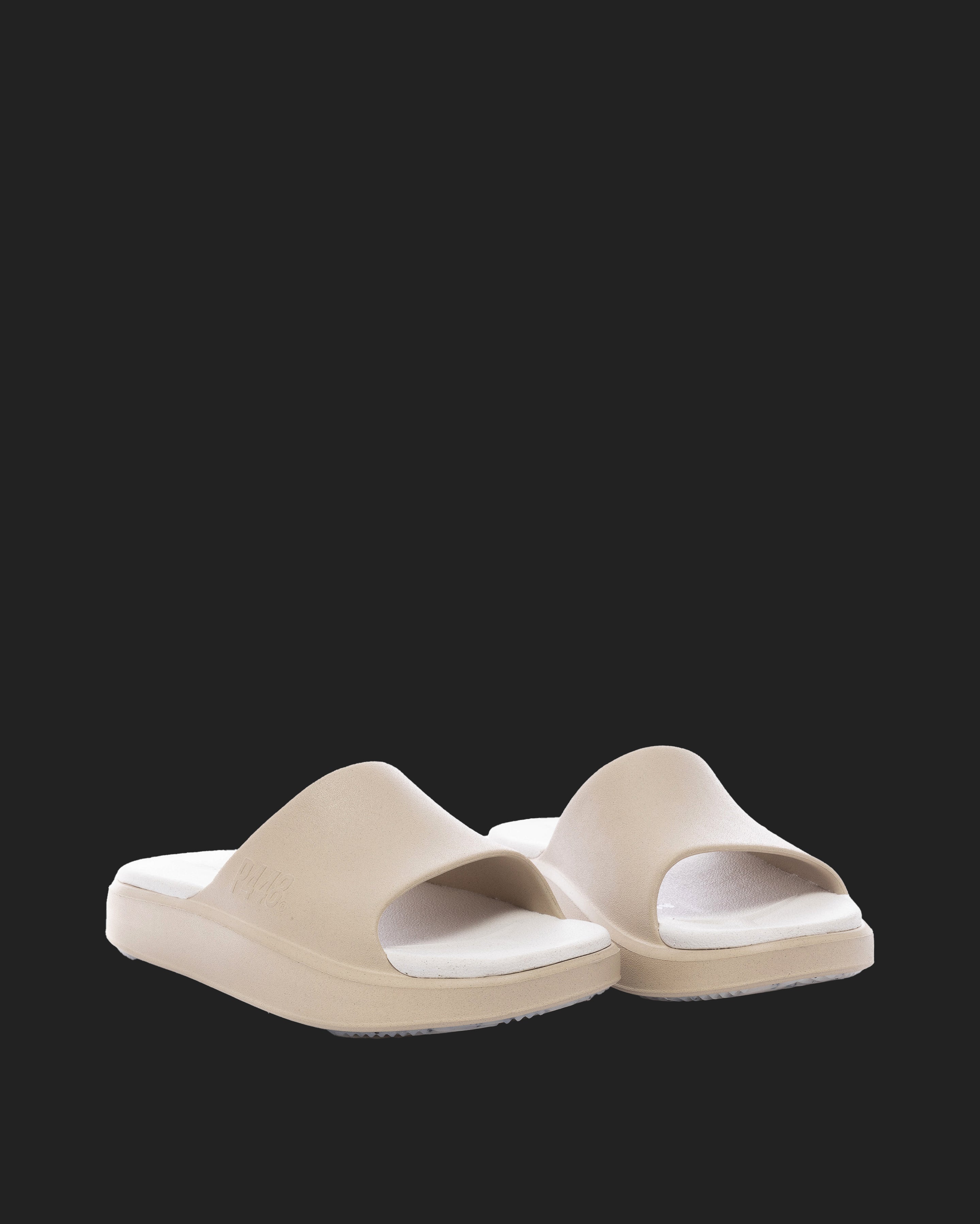 Our slide features a sand rubber design crafted with an off-white anatomic BLOOM footbed and a sand high-density BLOOM outsole. The recycled non-slip rubber tread makes them the perfect warm-weather adventure sandal—plus, this pair comes packed in a water-resistant cooler bag with a bottle opener carabiner.