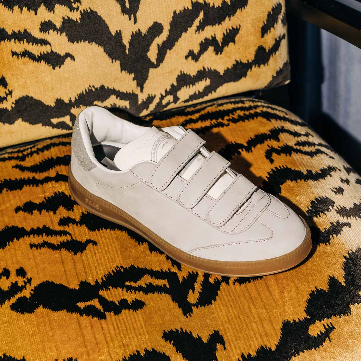 • Off white suede tongue