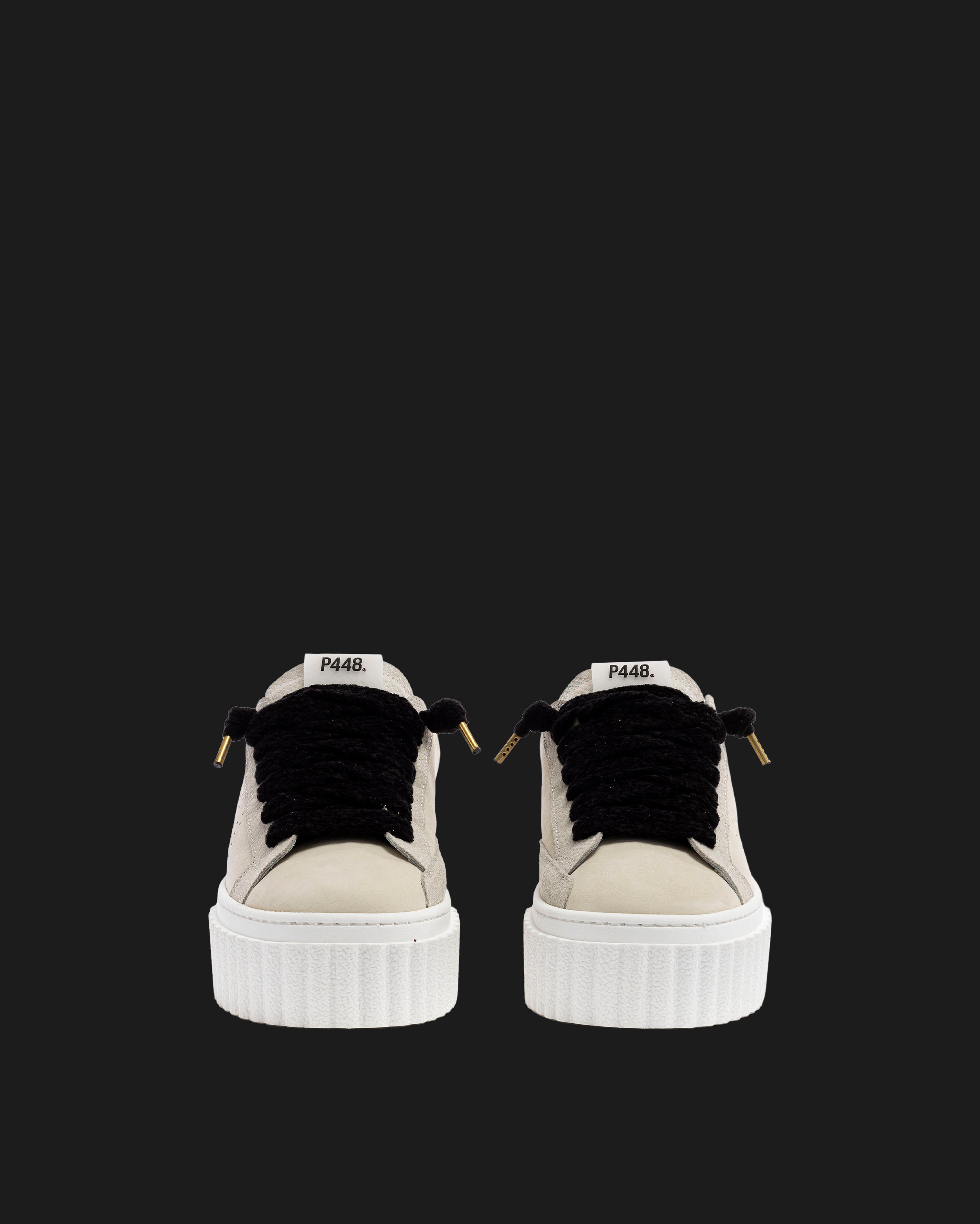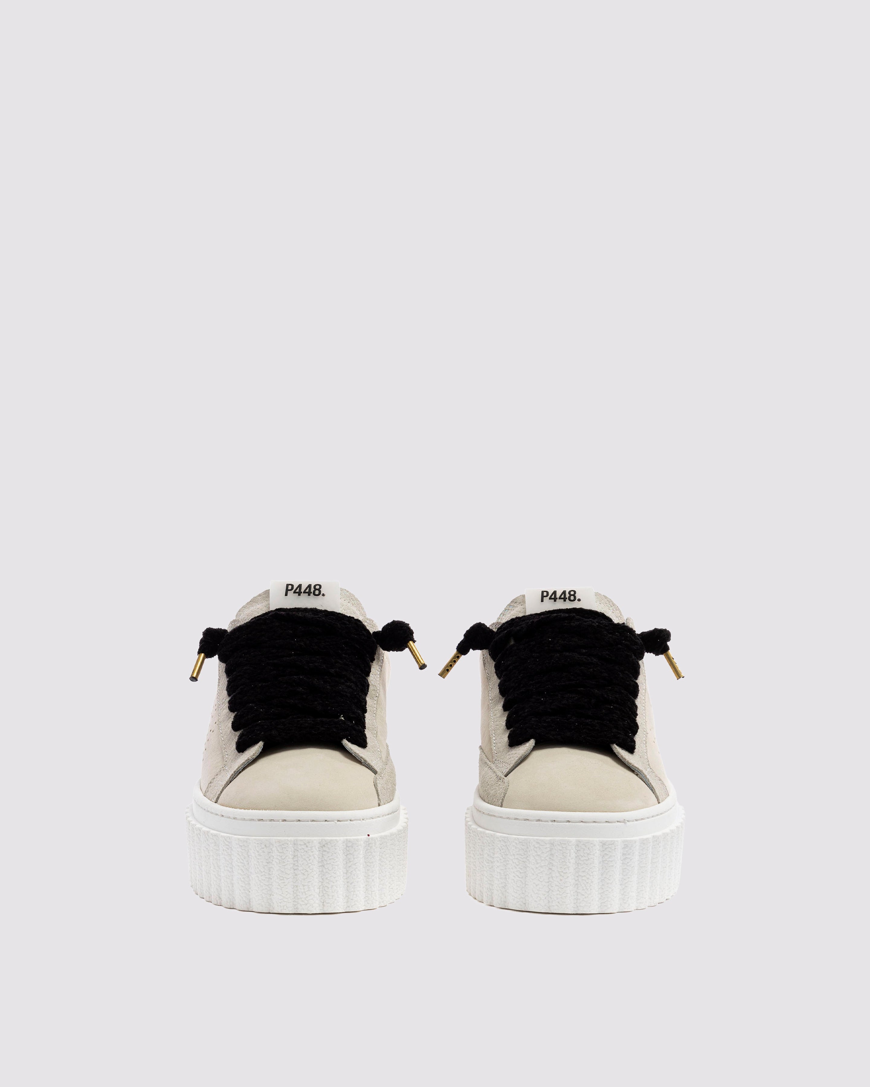• Cream nubuck leather upper with perforated P448 logo