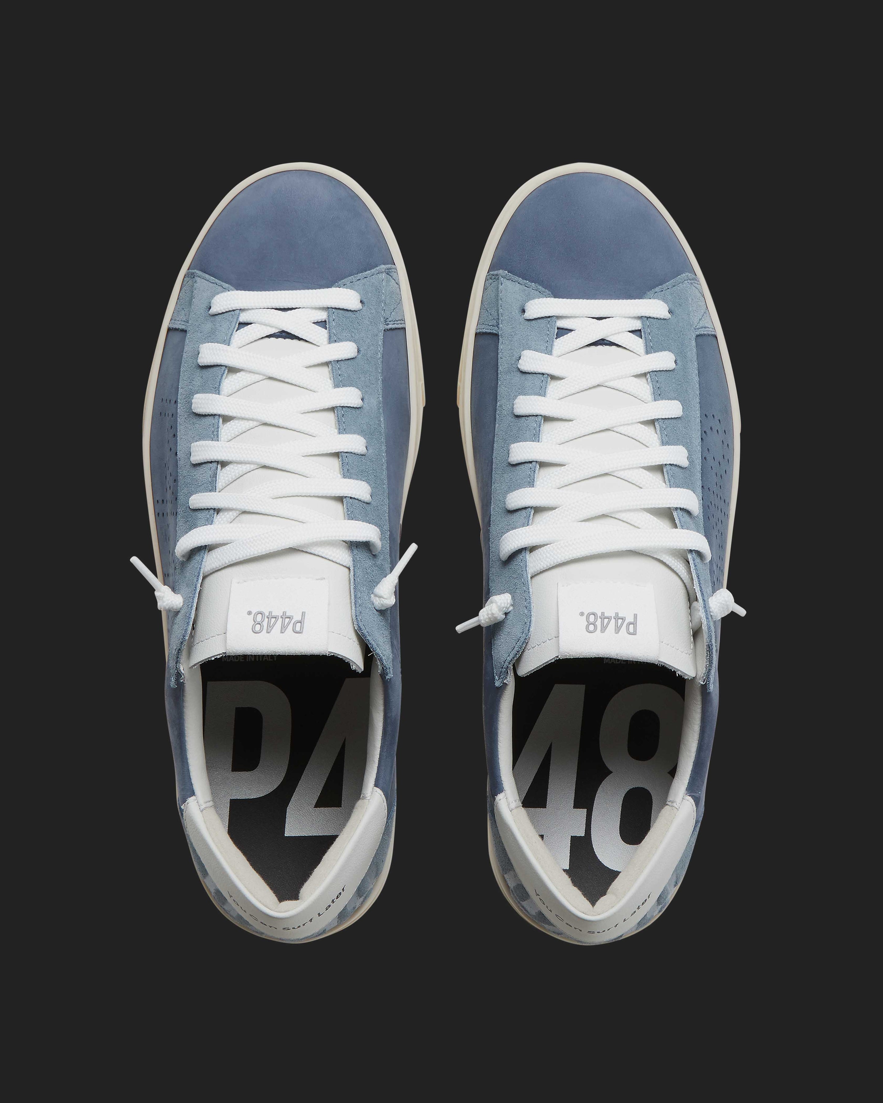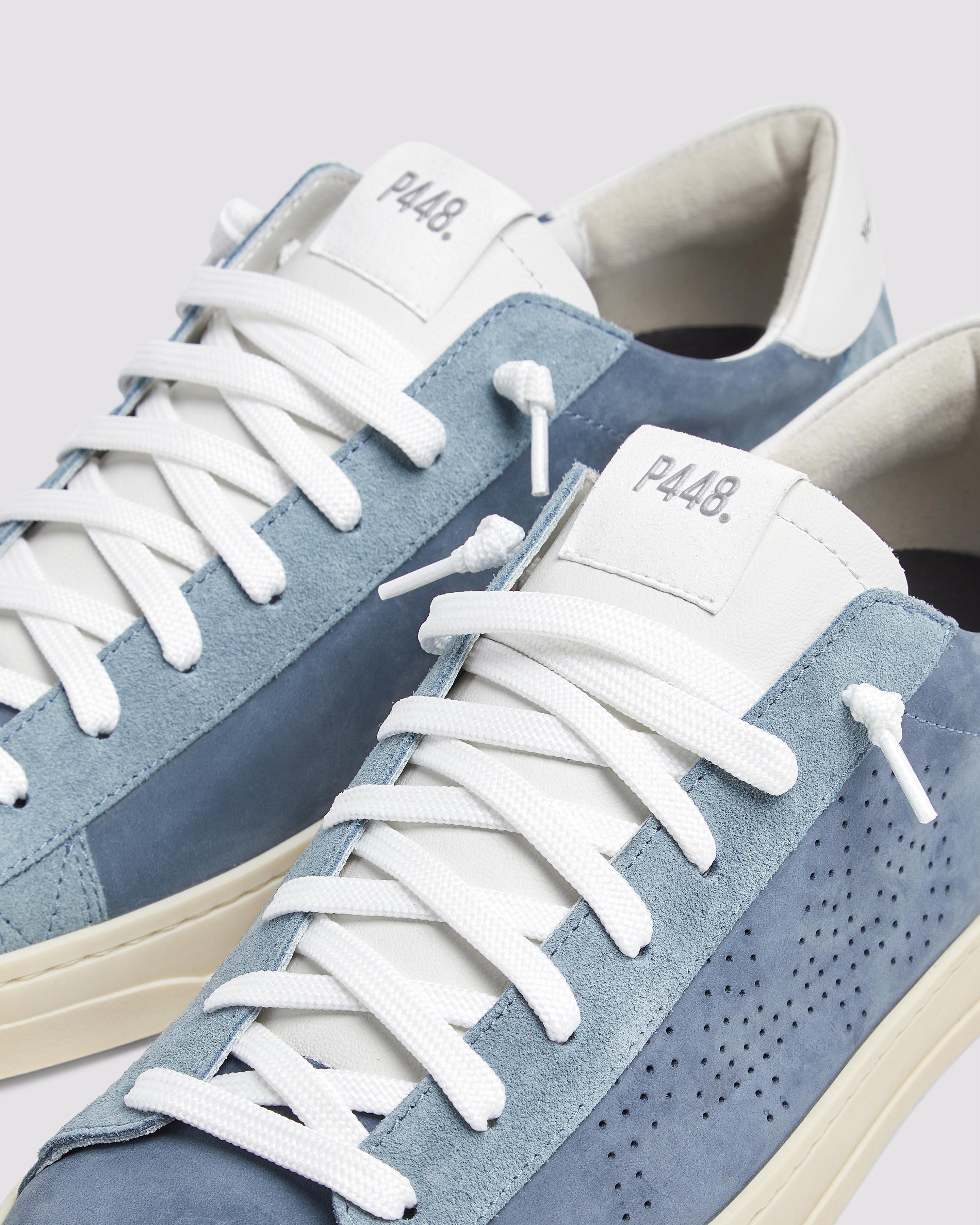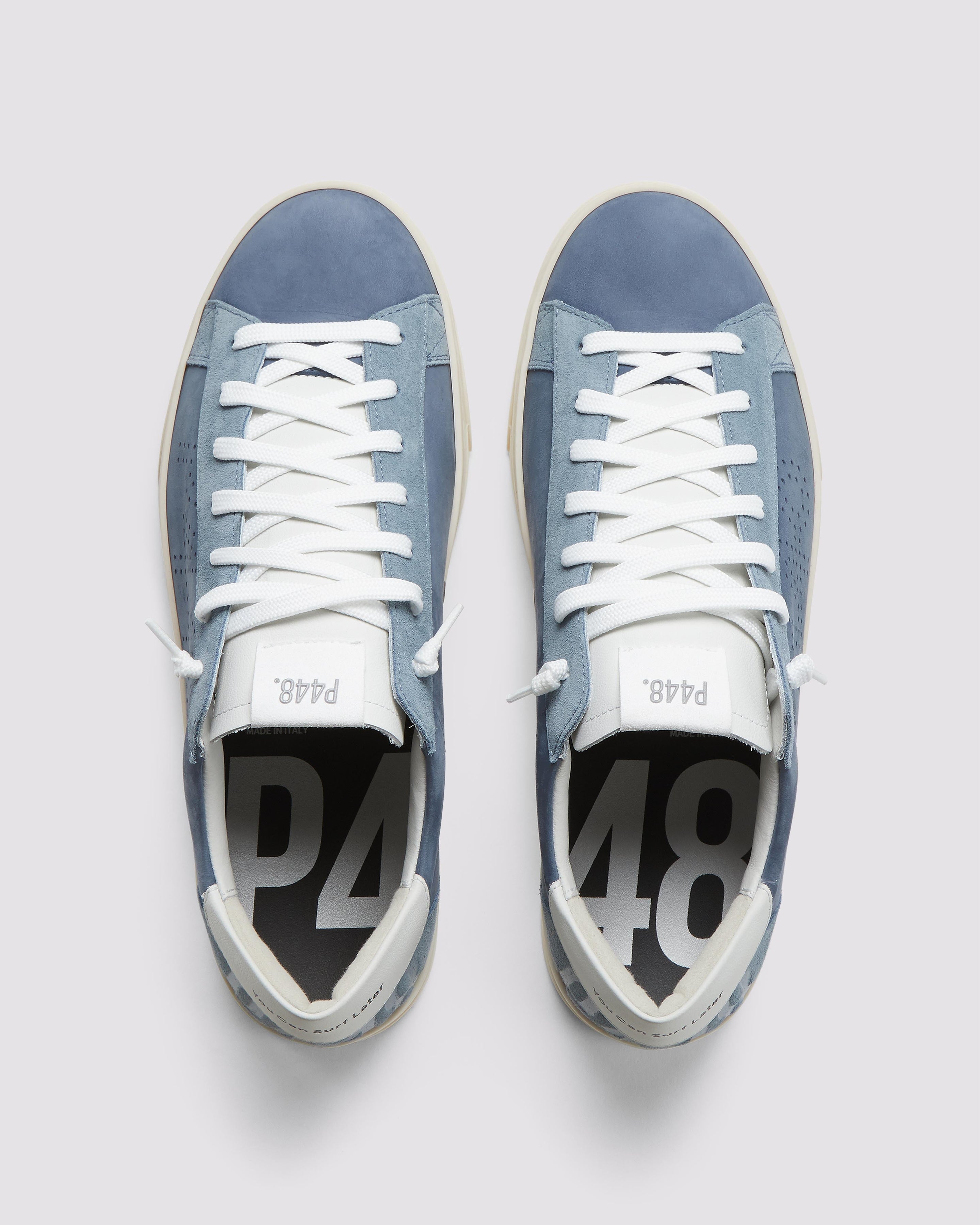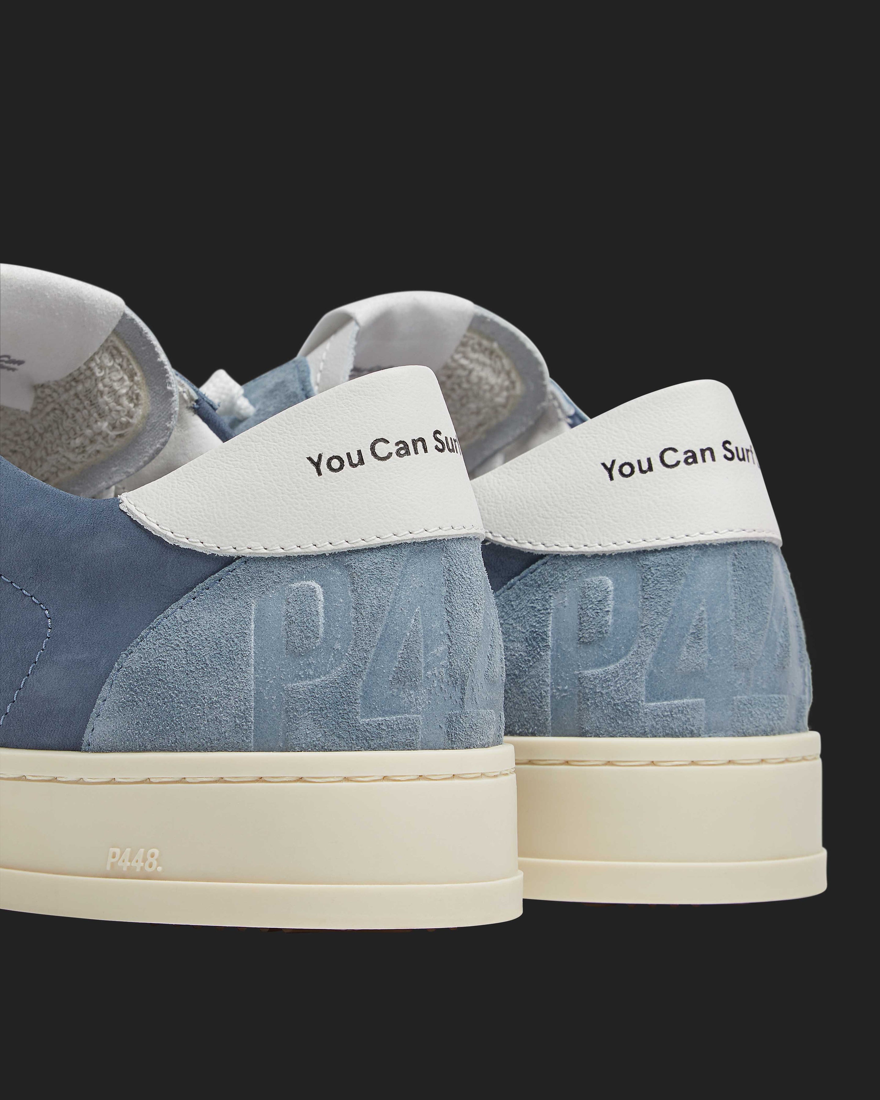 The Jack Storm is wrapped in blue nubuck leather complemented by white leather and blue suede accents. White laces and our signature P448 rubber soles with honey treads ground the look.