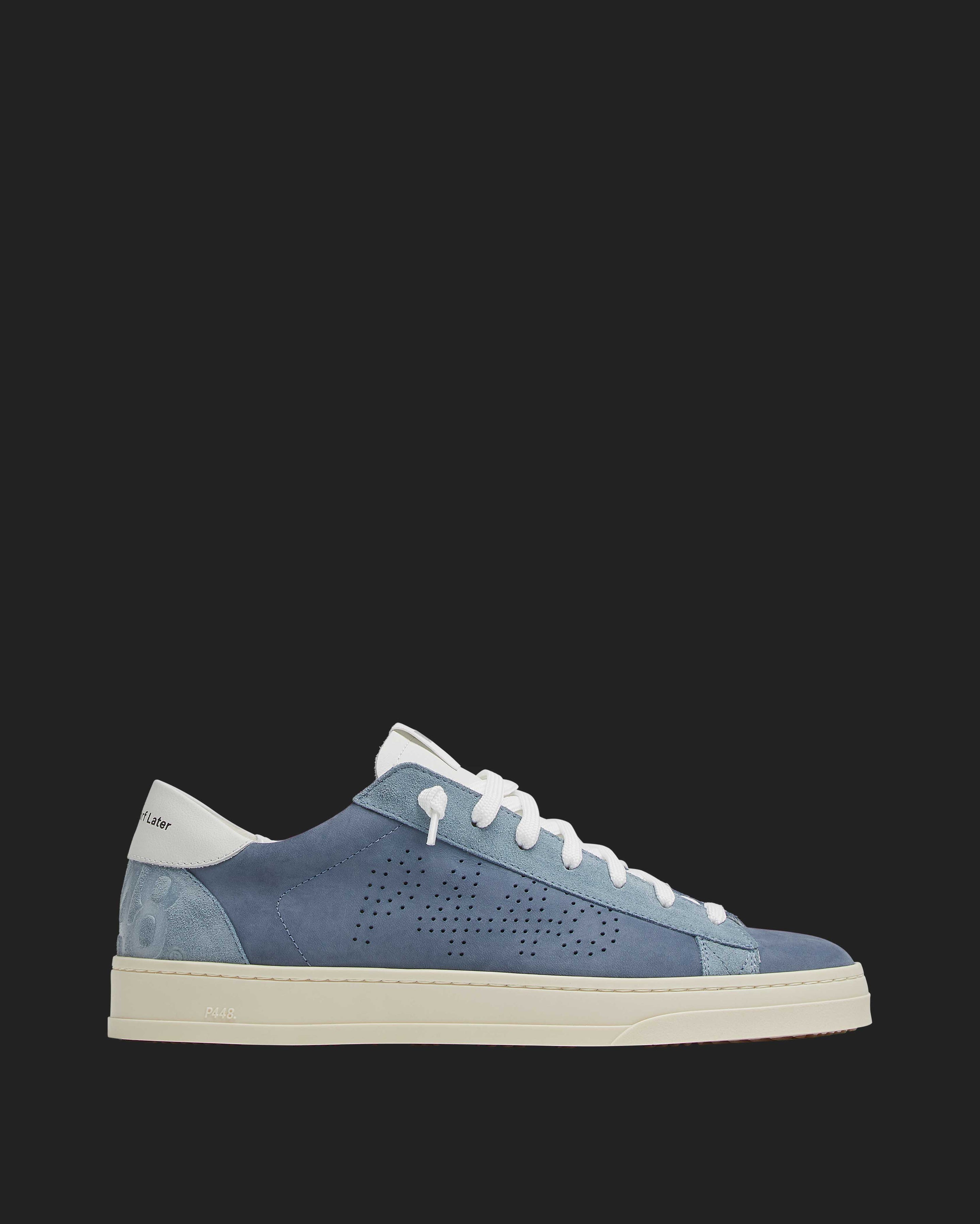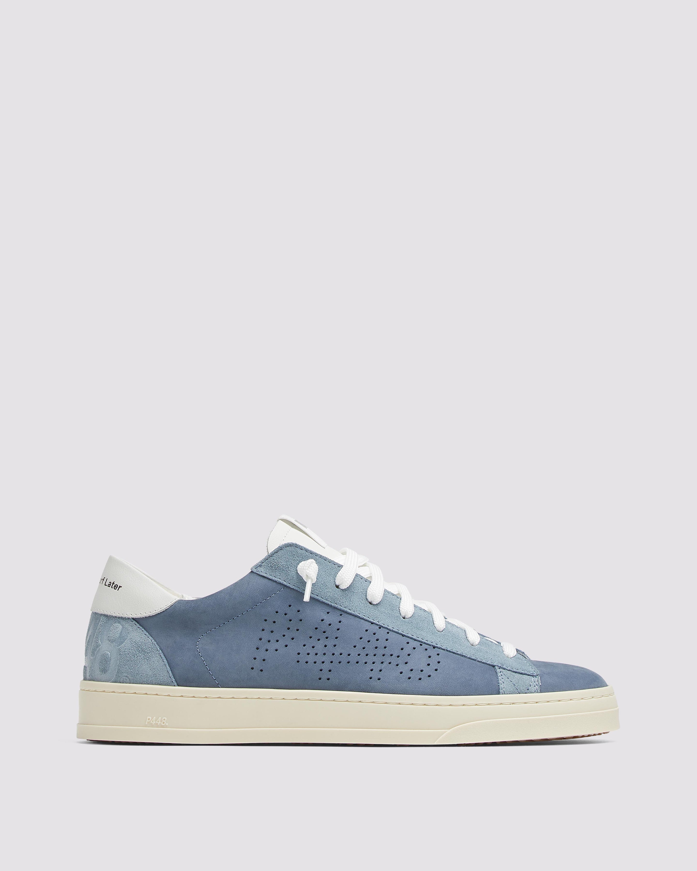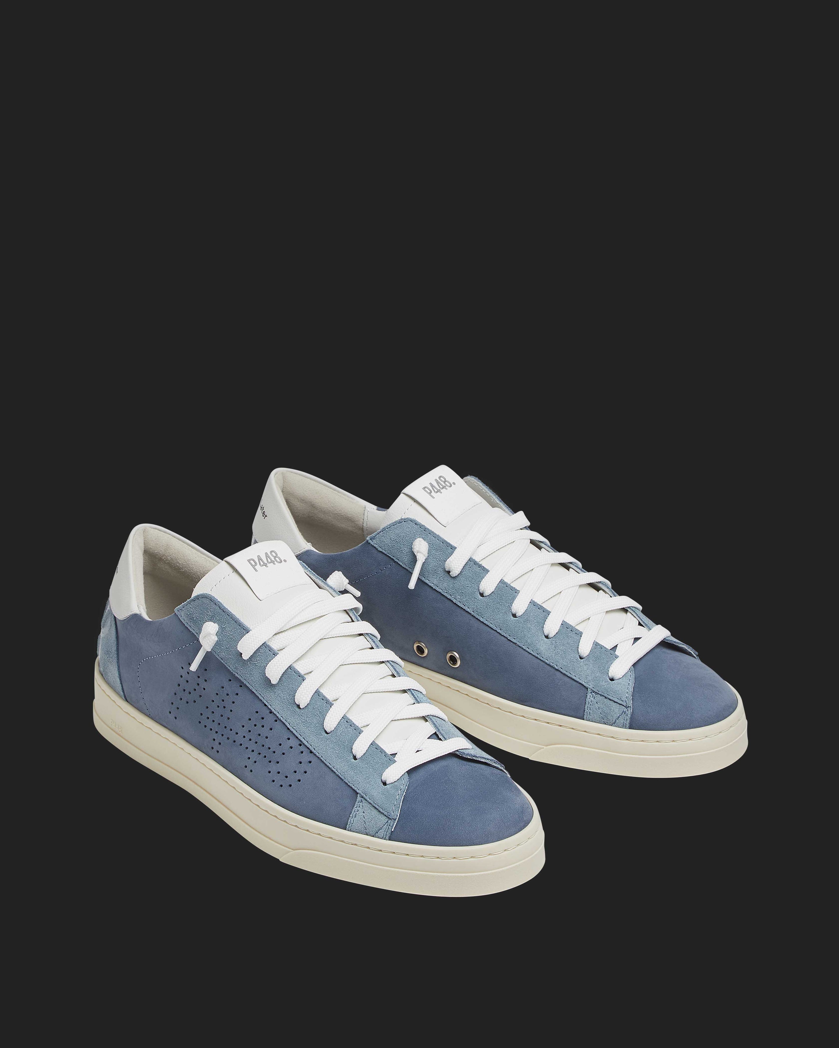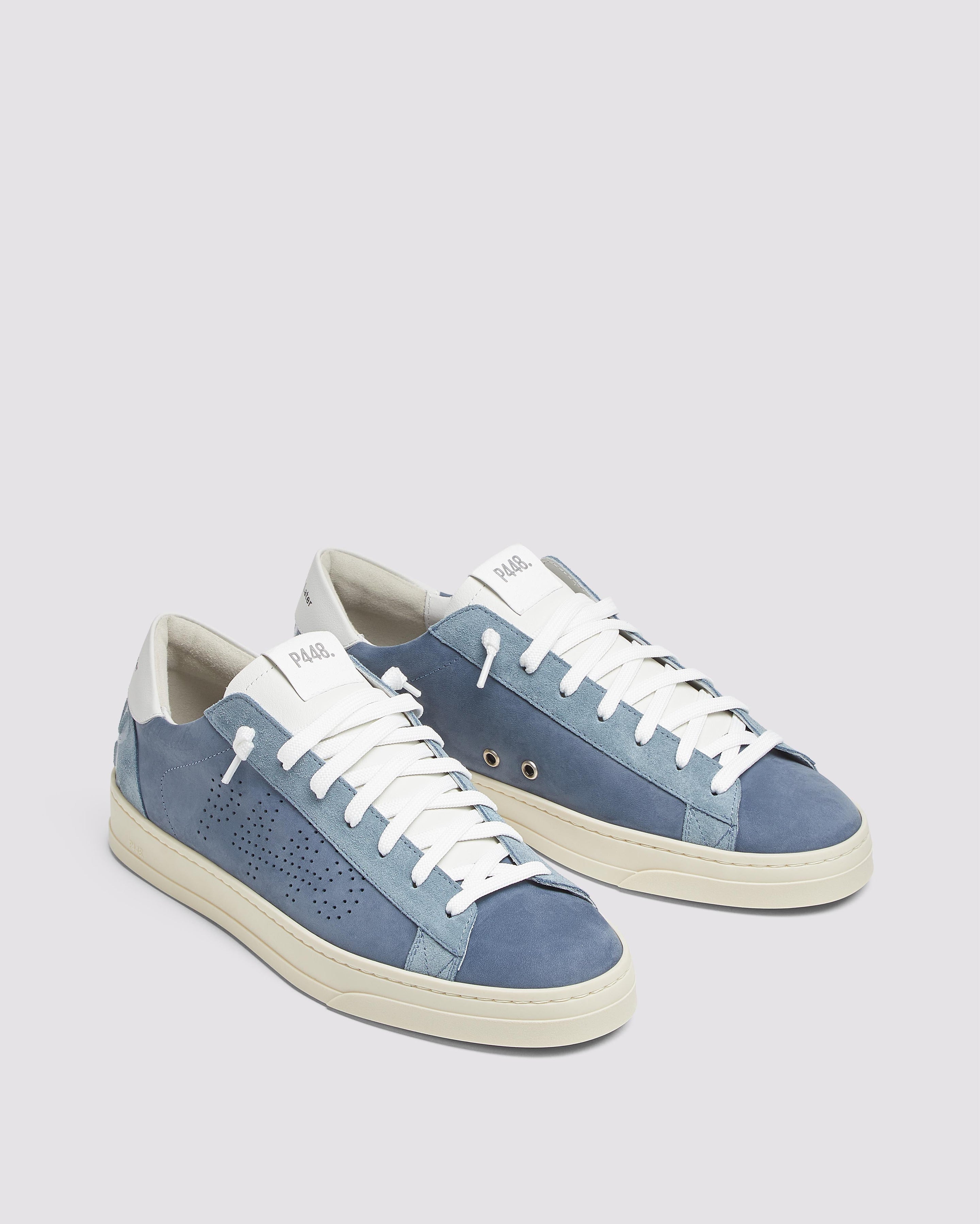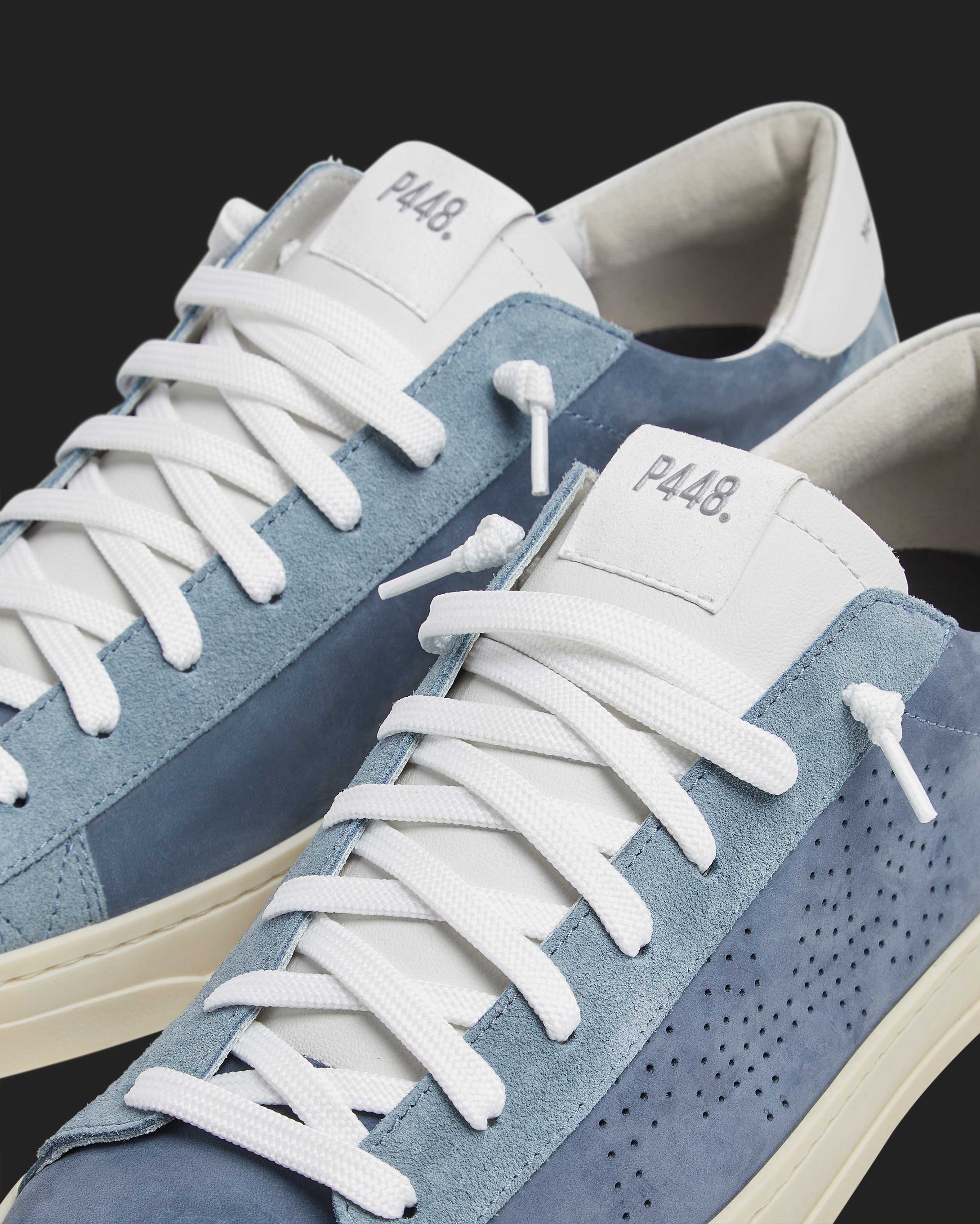 The Jack Storm is wrapped in blue nubuck leather complemented by white leather and blue suede accents. White laces and our signature P448 rubber soles with honey treads ground the look.