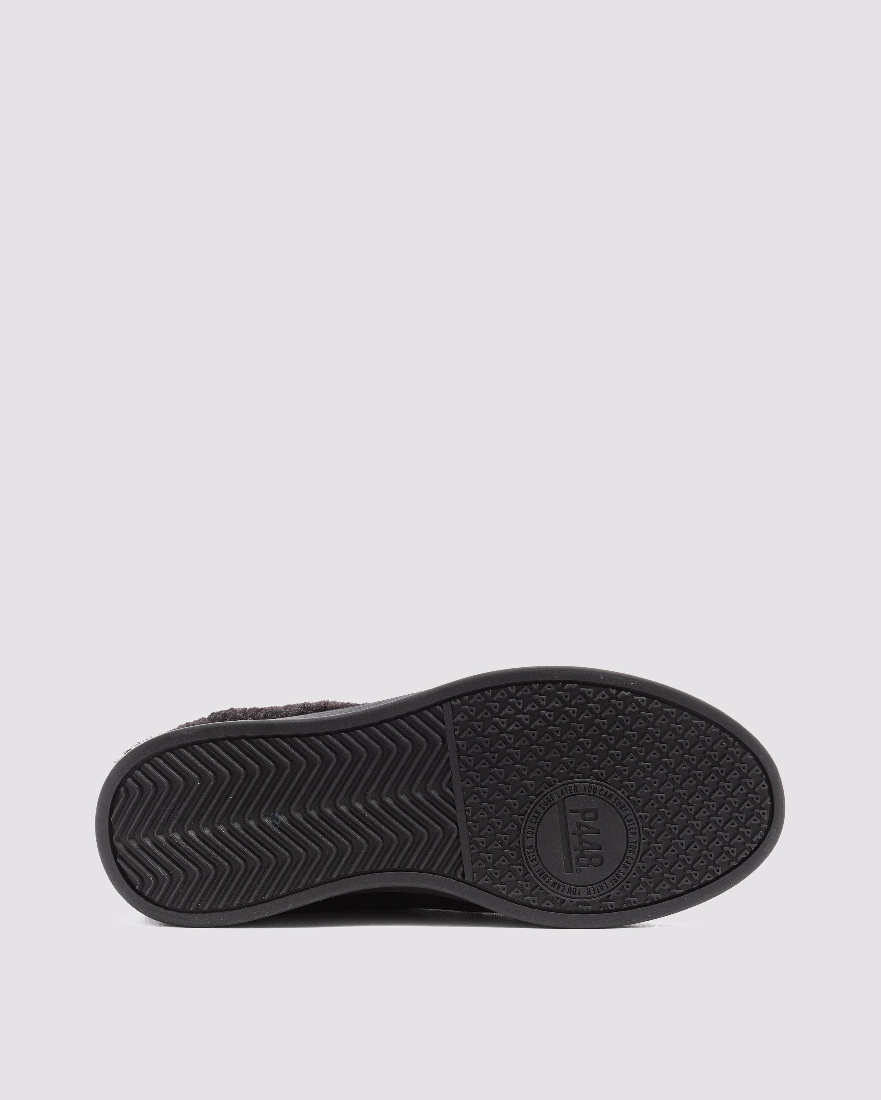 The Monaco Black is the faux fur trim slipper your shoe rotation needs, featuring an all-over black suede design and soft black faux fur trim. Black cotton laces and our P448 black rubber soles finish off the look.
