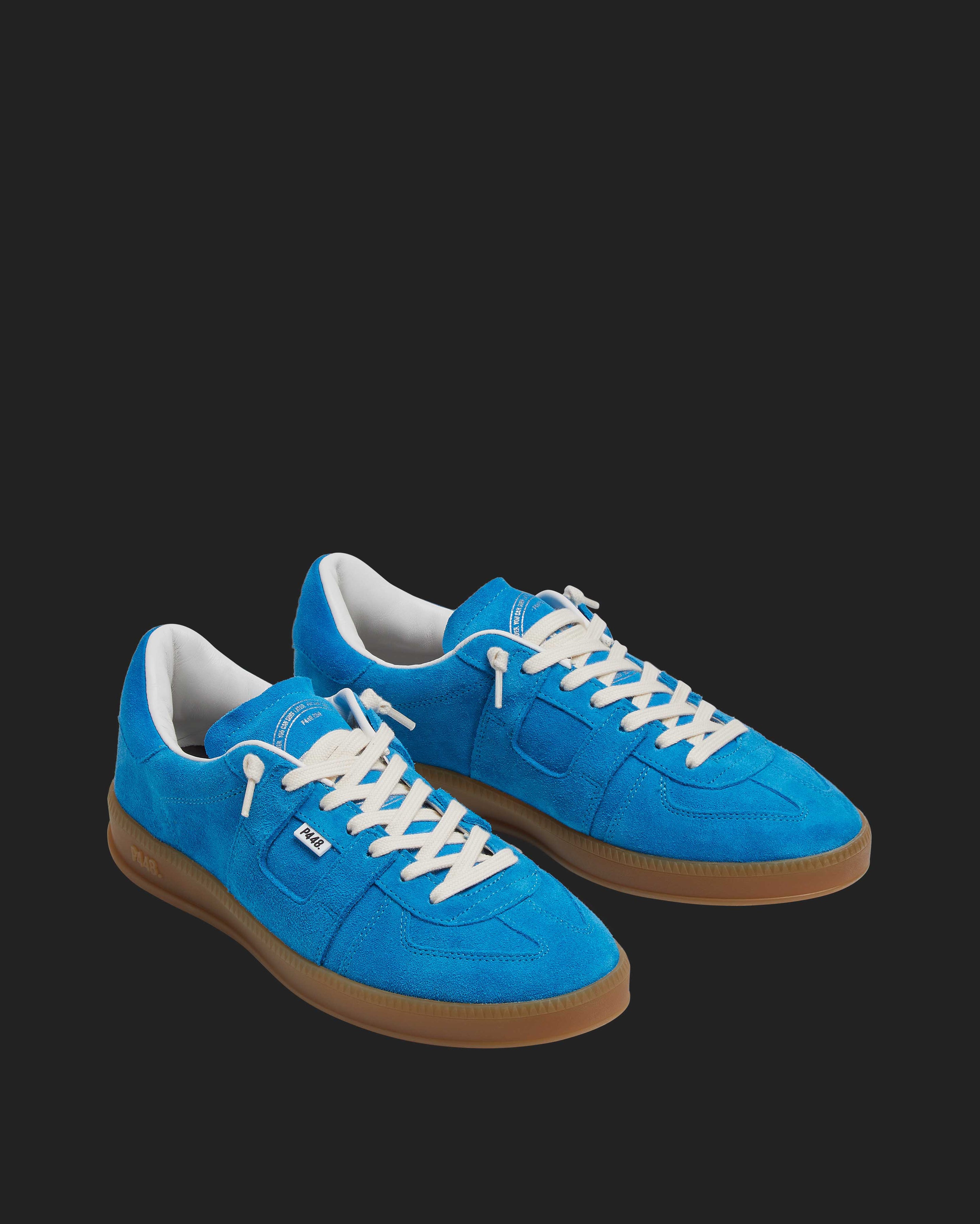 The Monza Sea features all-over electric blue suede suede finished with our signature P448 amber gum soles. Off-white cotton laces finish...