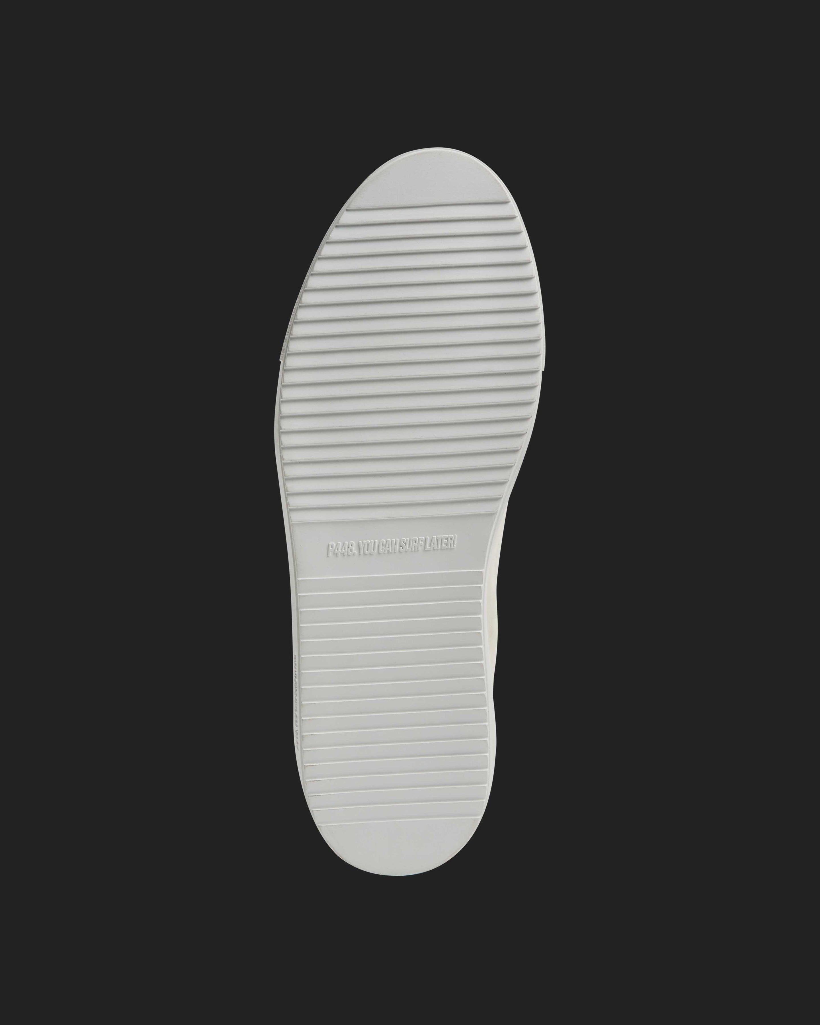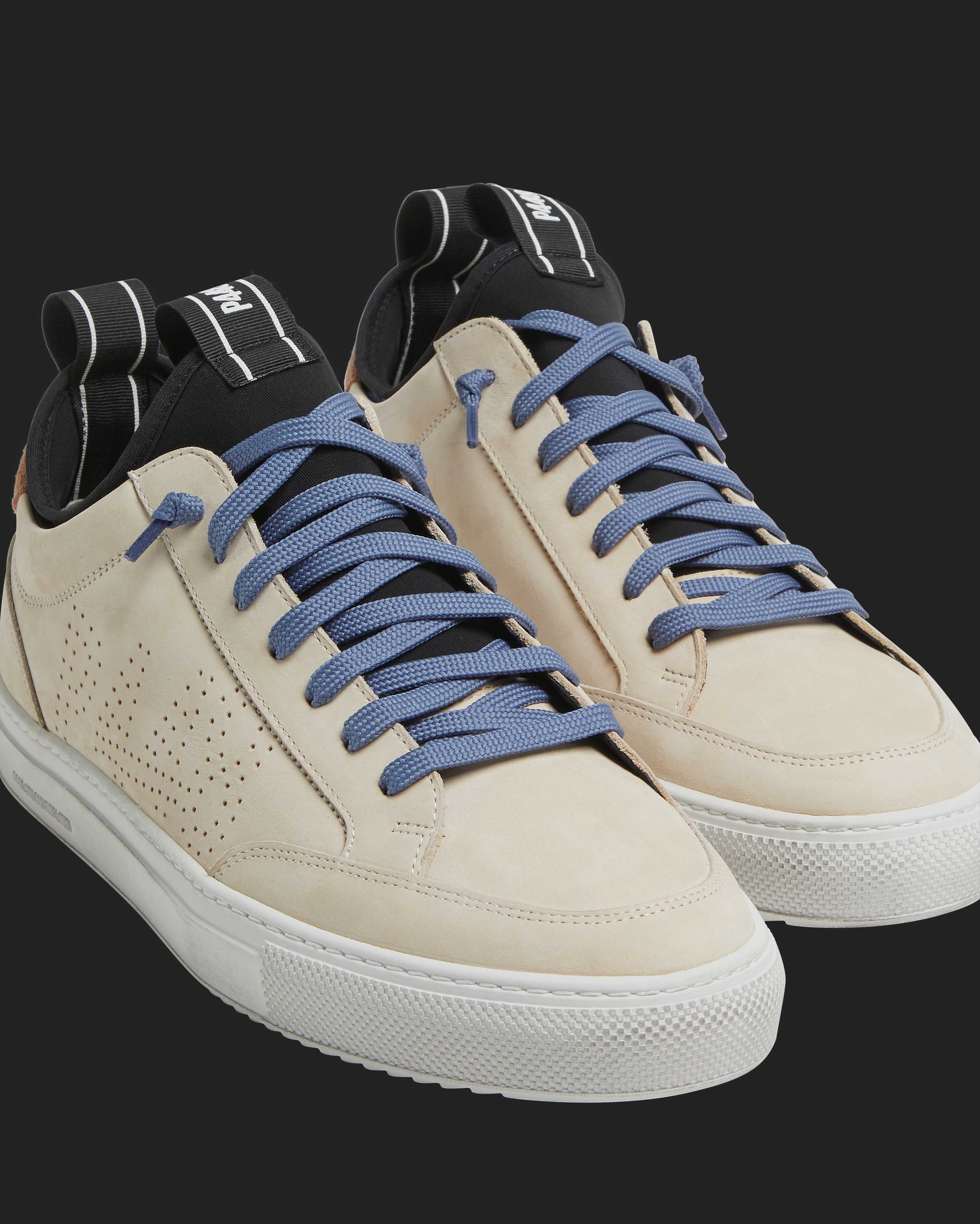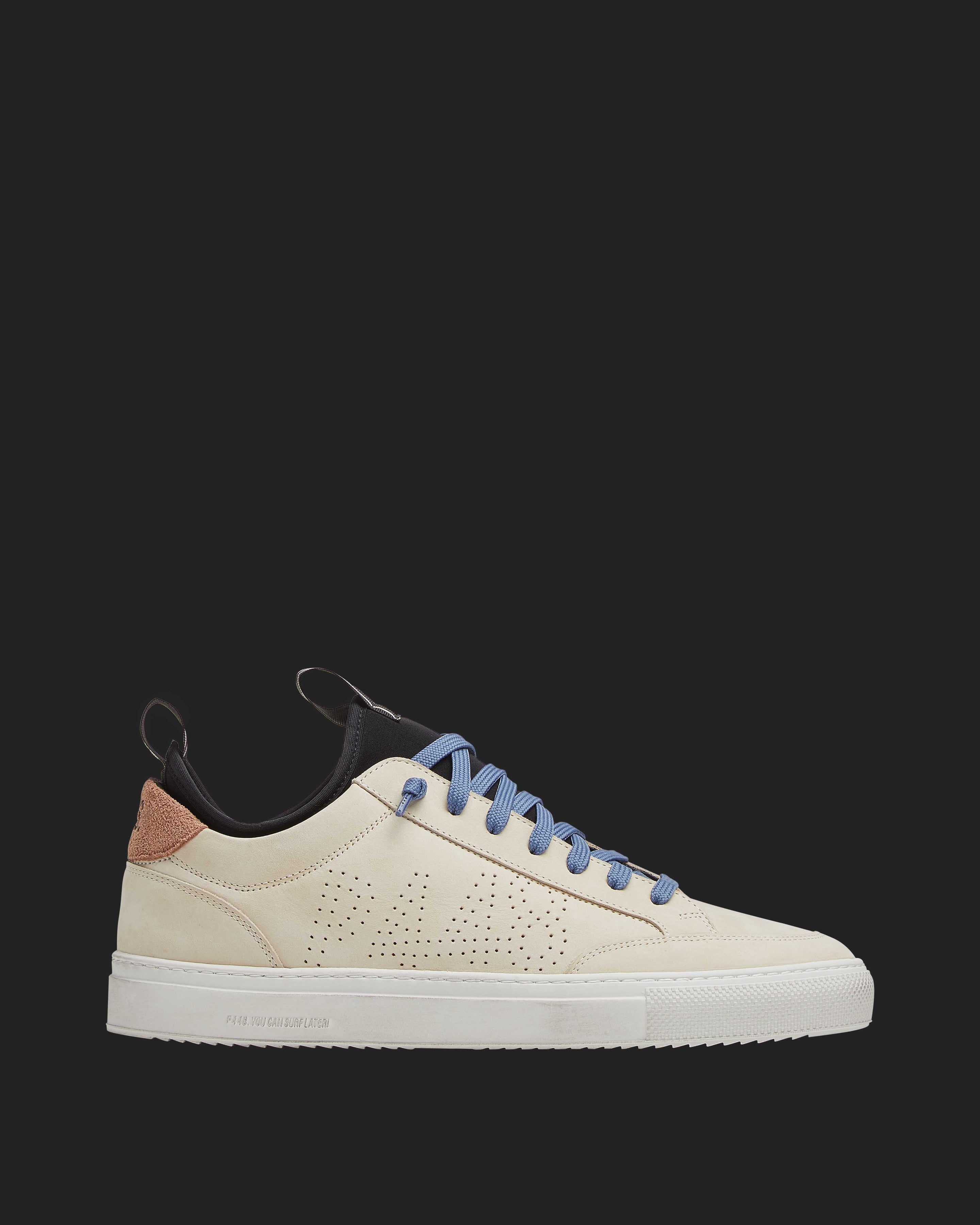 The easygoing Sohosocks Blurra is wrapped in cream nubuck leather with a contrasting brown suede heel tab and black sock lining. Deep blue laces and our signature P448 hand-distressed sole finish off the look.