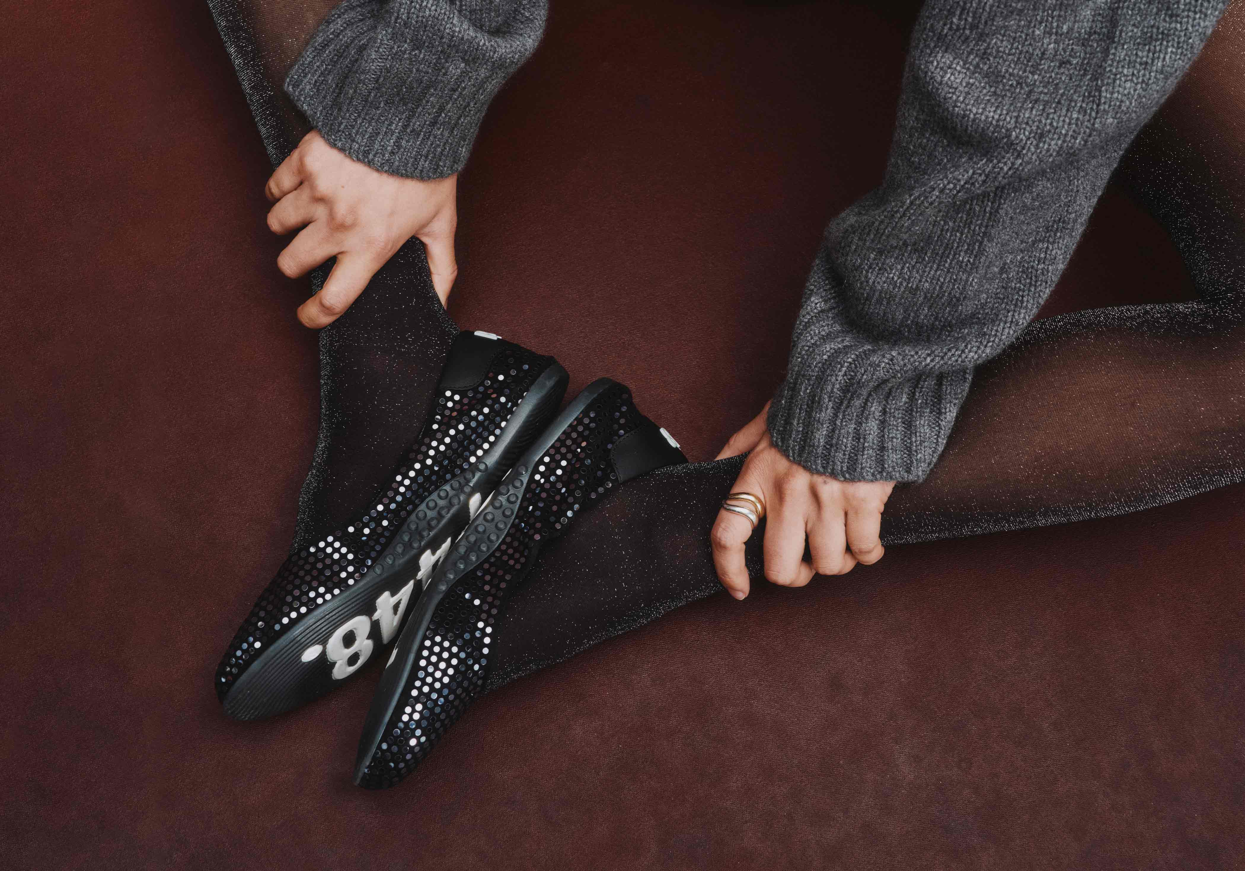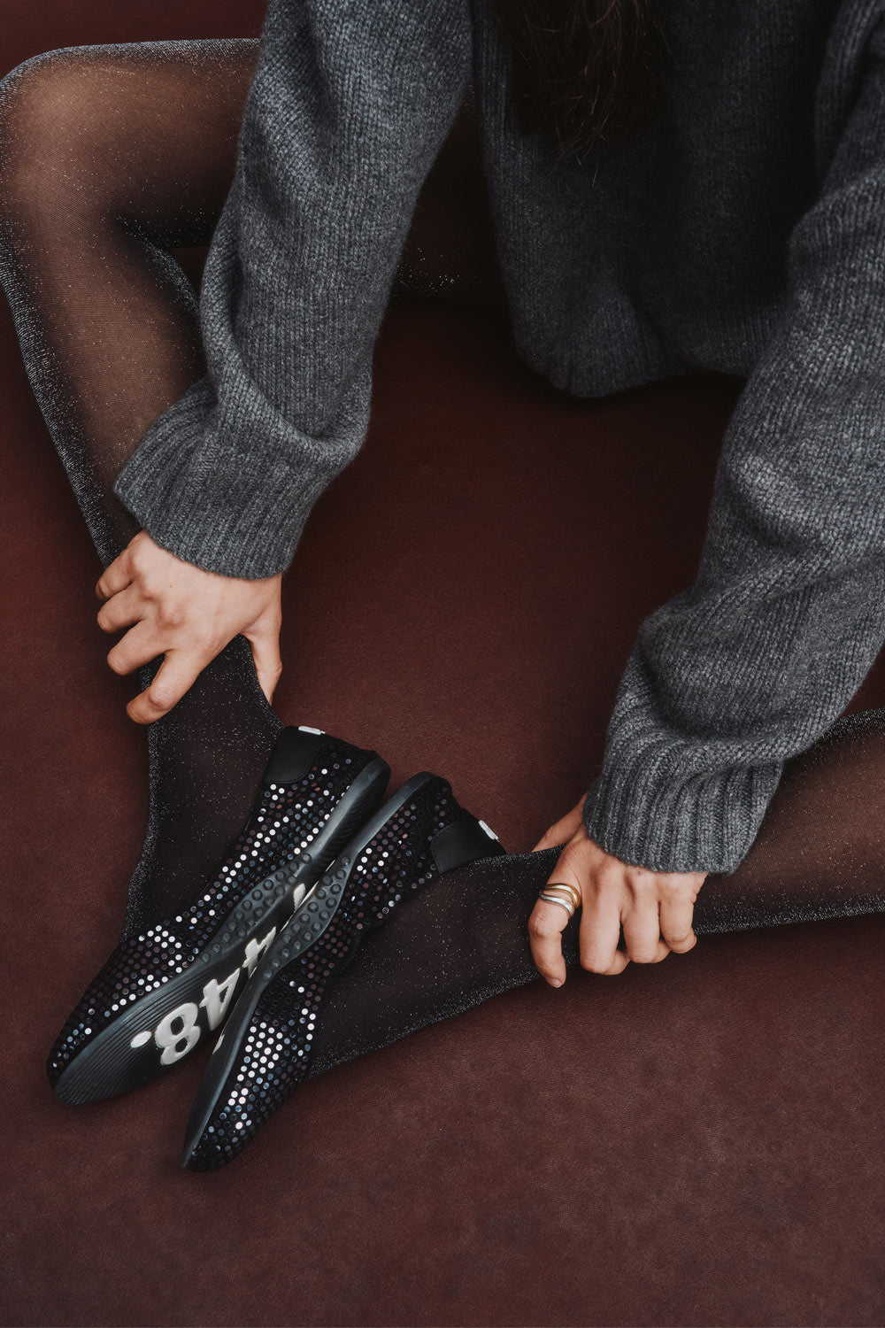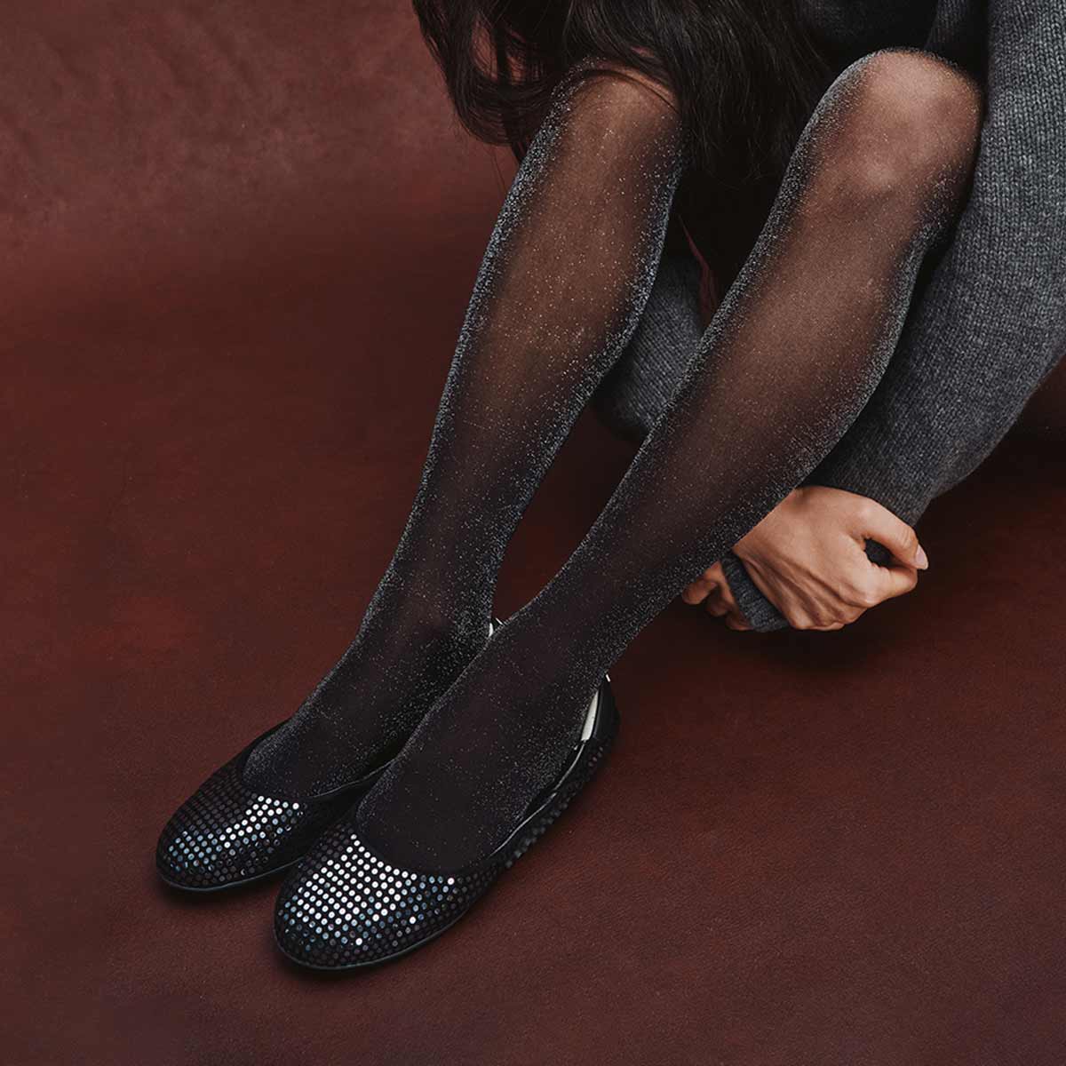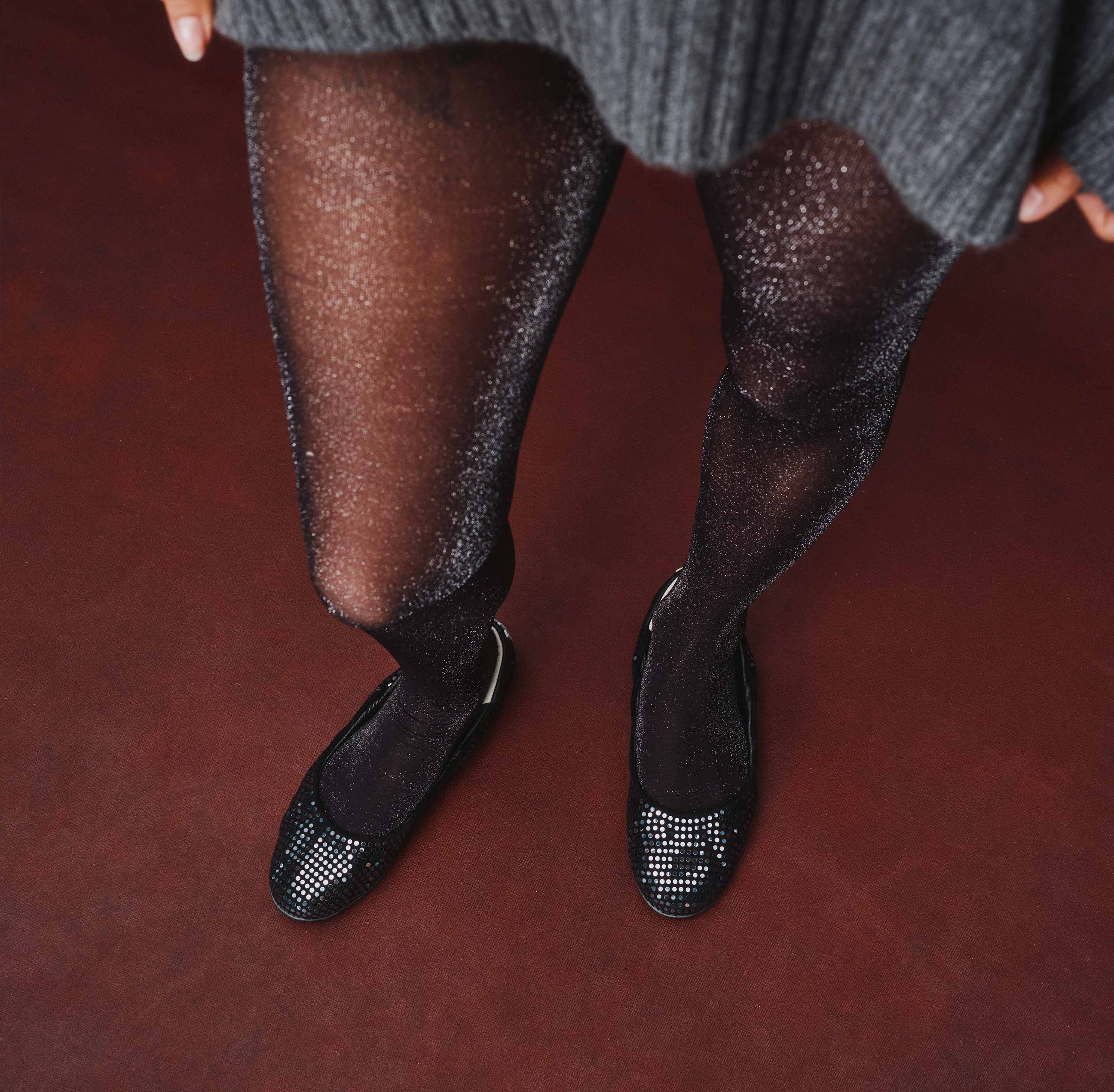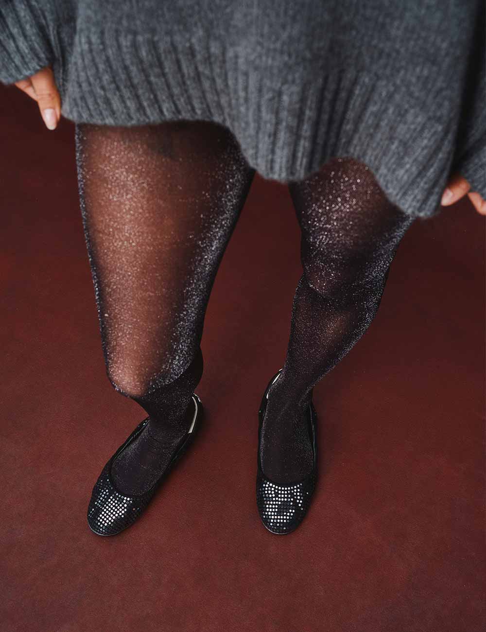 • Black suede with silver paillettes upper