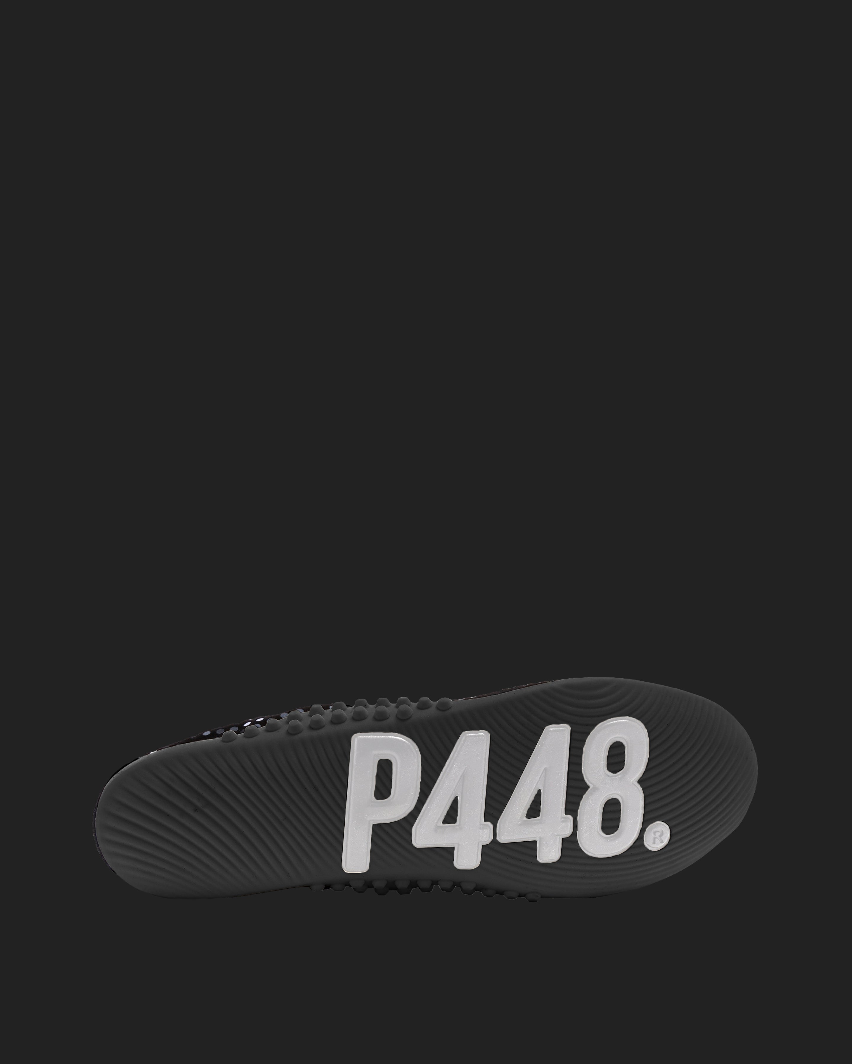 Our P448 designs push the boundaries of footwear by choosing unique specialty materials, some of which require particular care. This includes haircalf, glitter, denim, sponge, and others. These materials are often delicate and difficult to clean. Try to avoid wet or muddy areas when wearing and bring to a cleaning expert when dirty or stained.