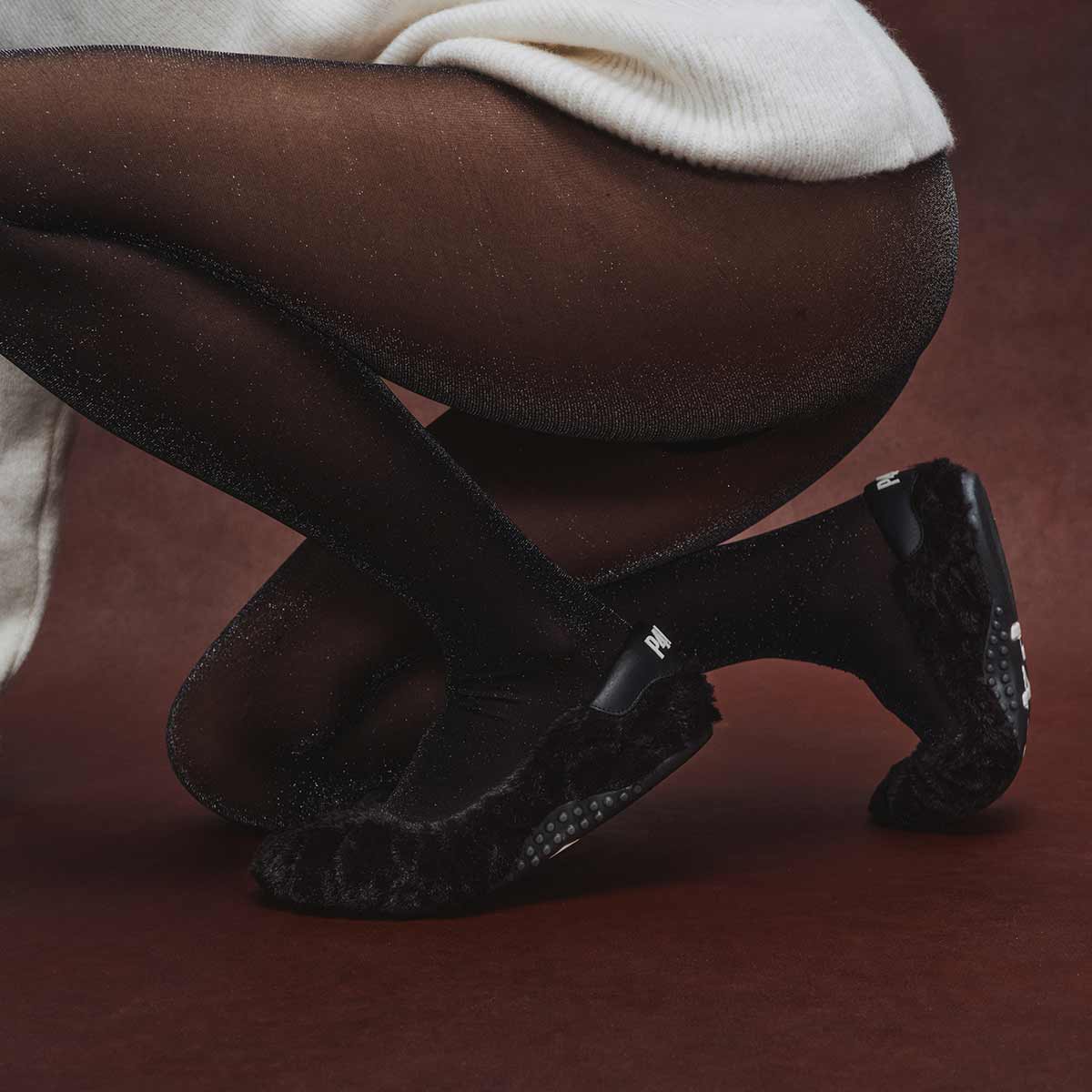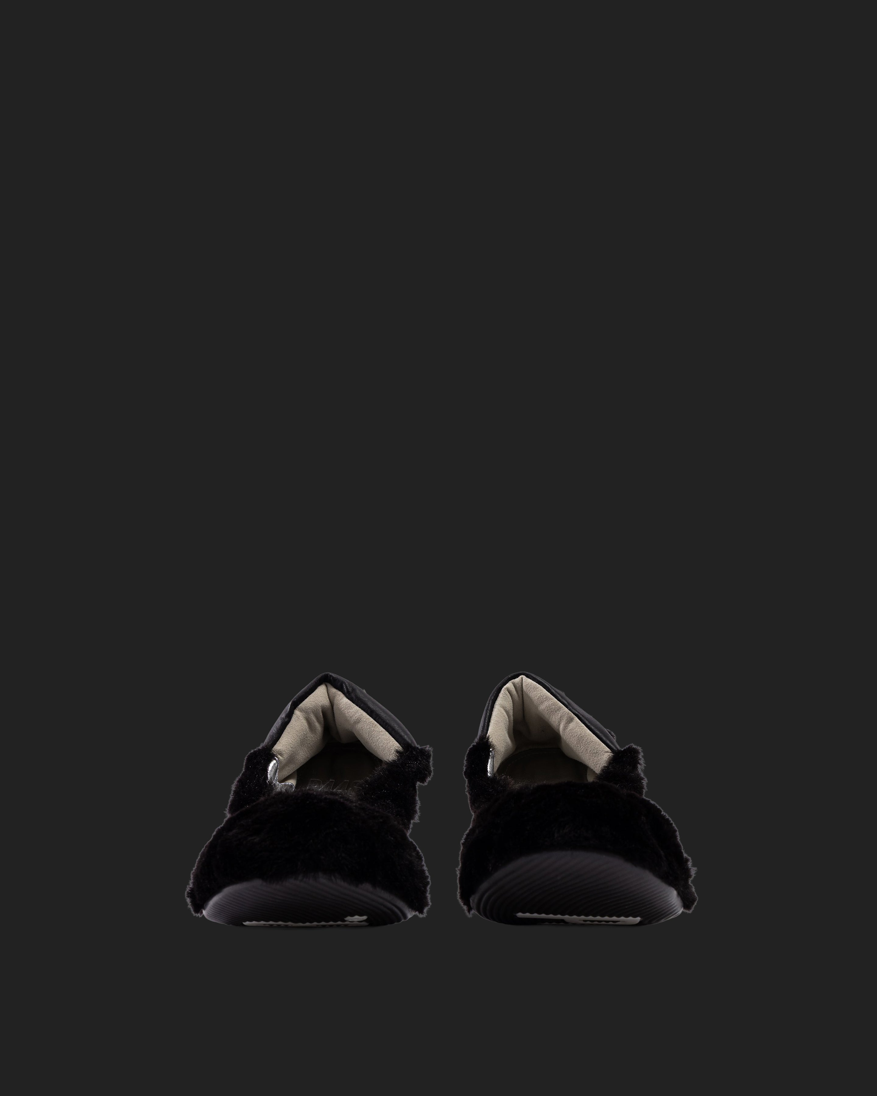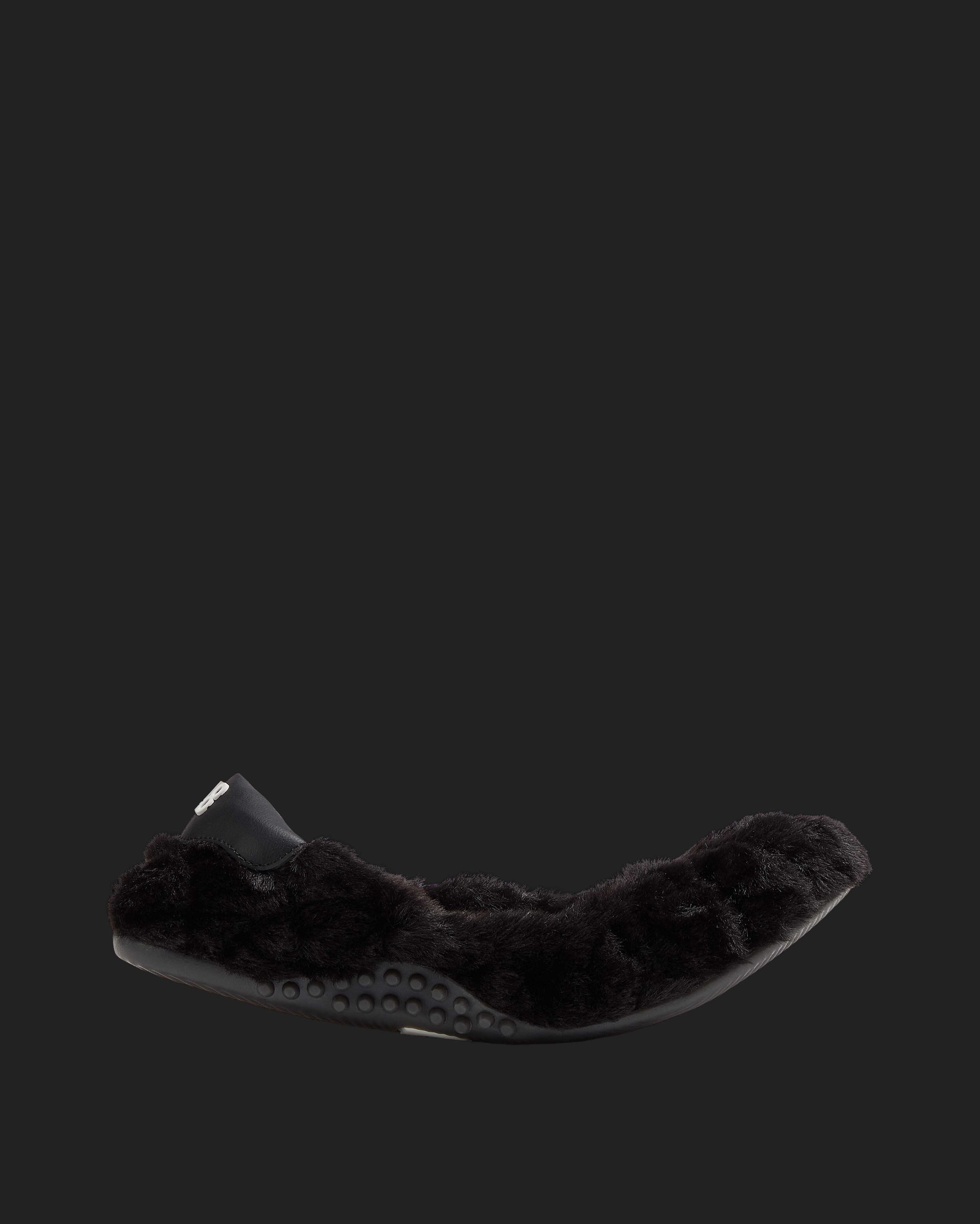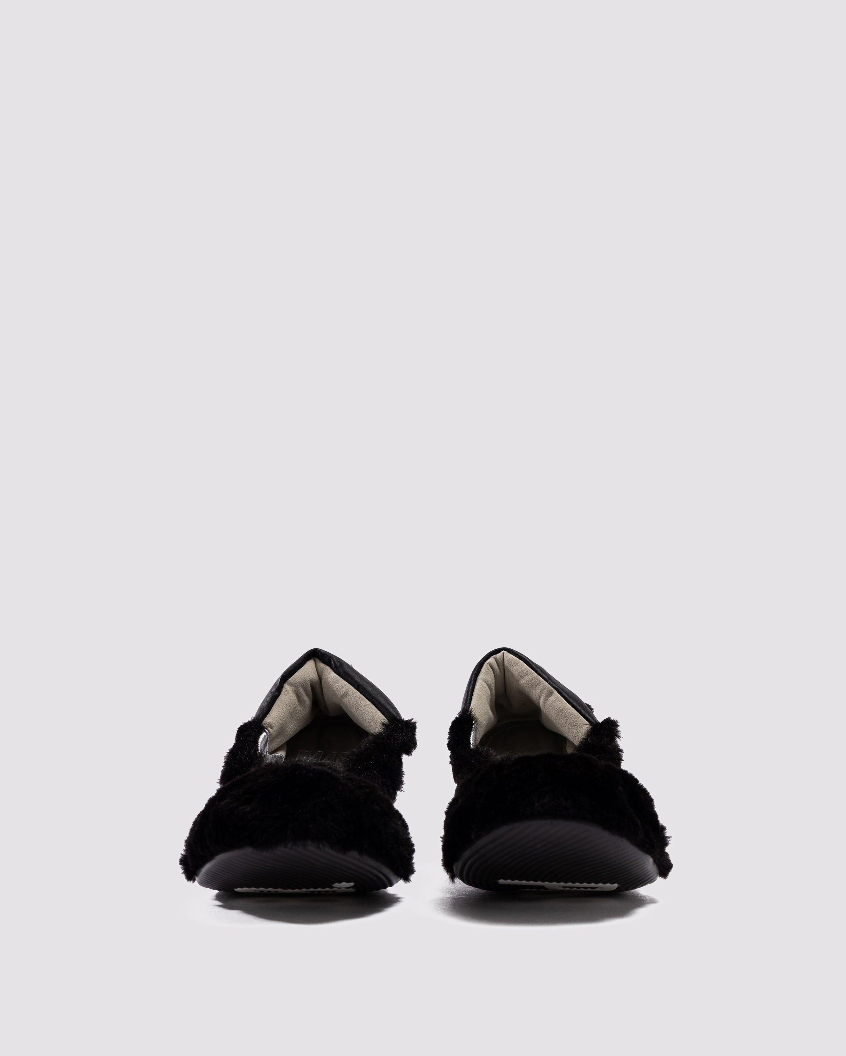 The Stella Black is the faux fur trim flat that always makes a statement.