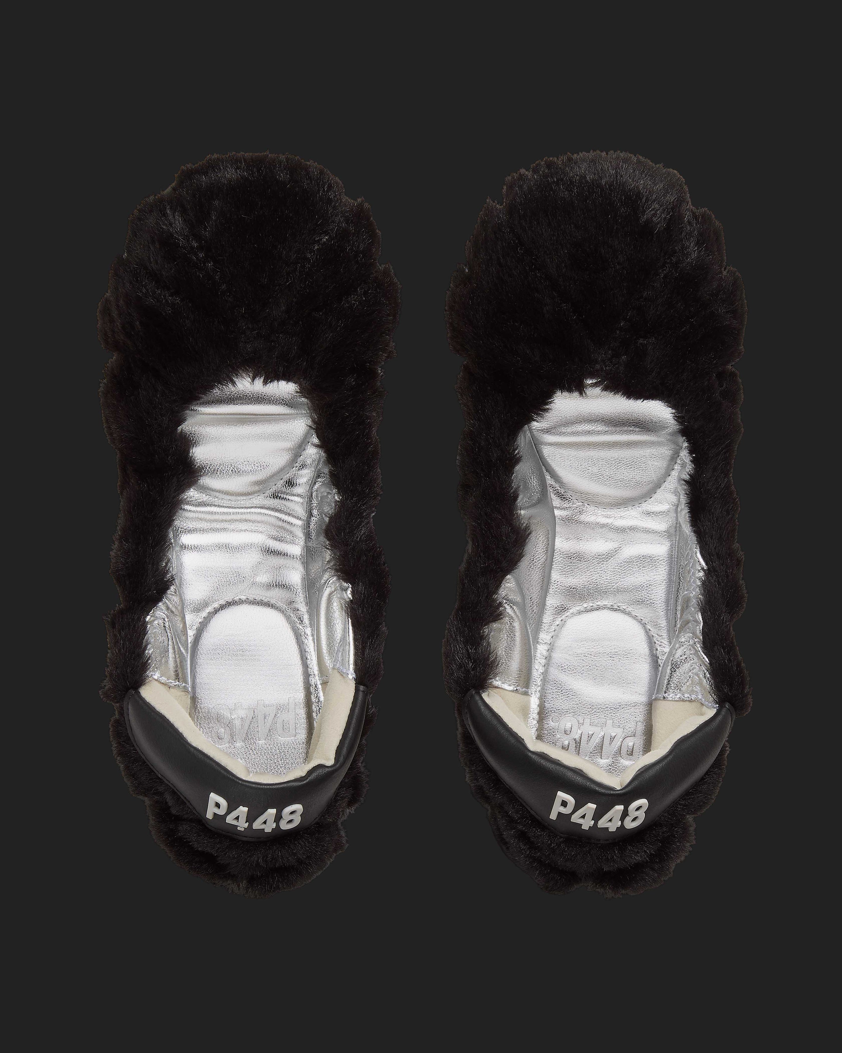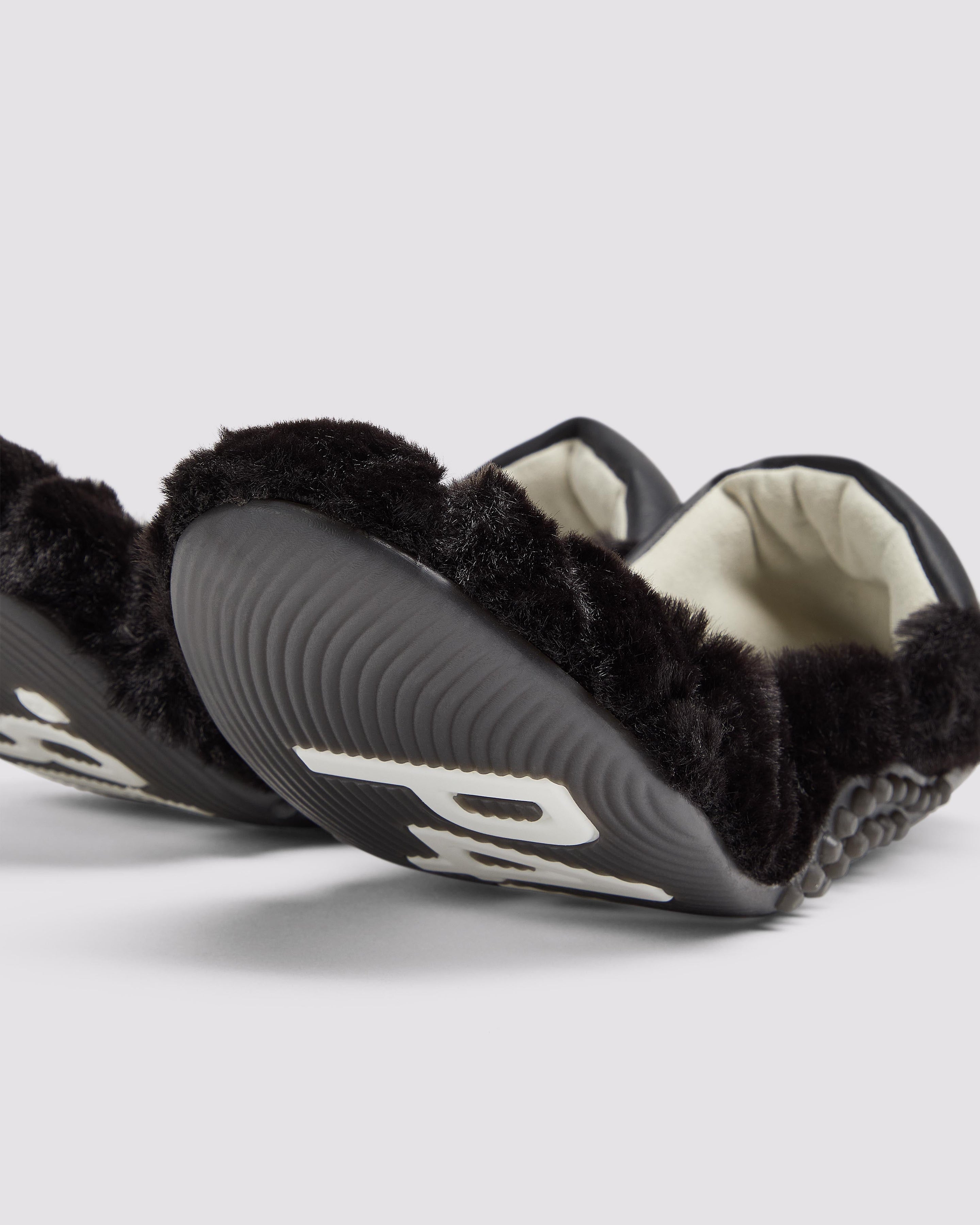 • Black faux fur upper