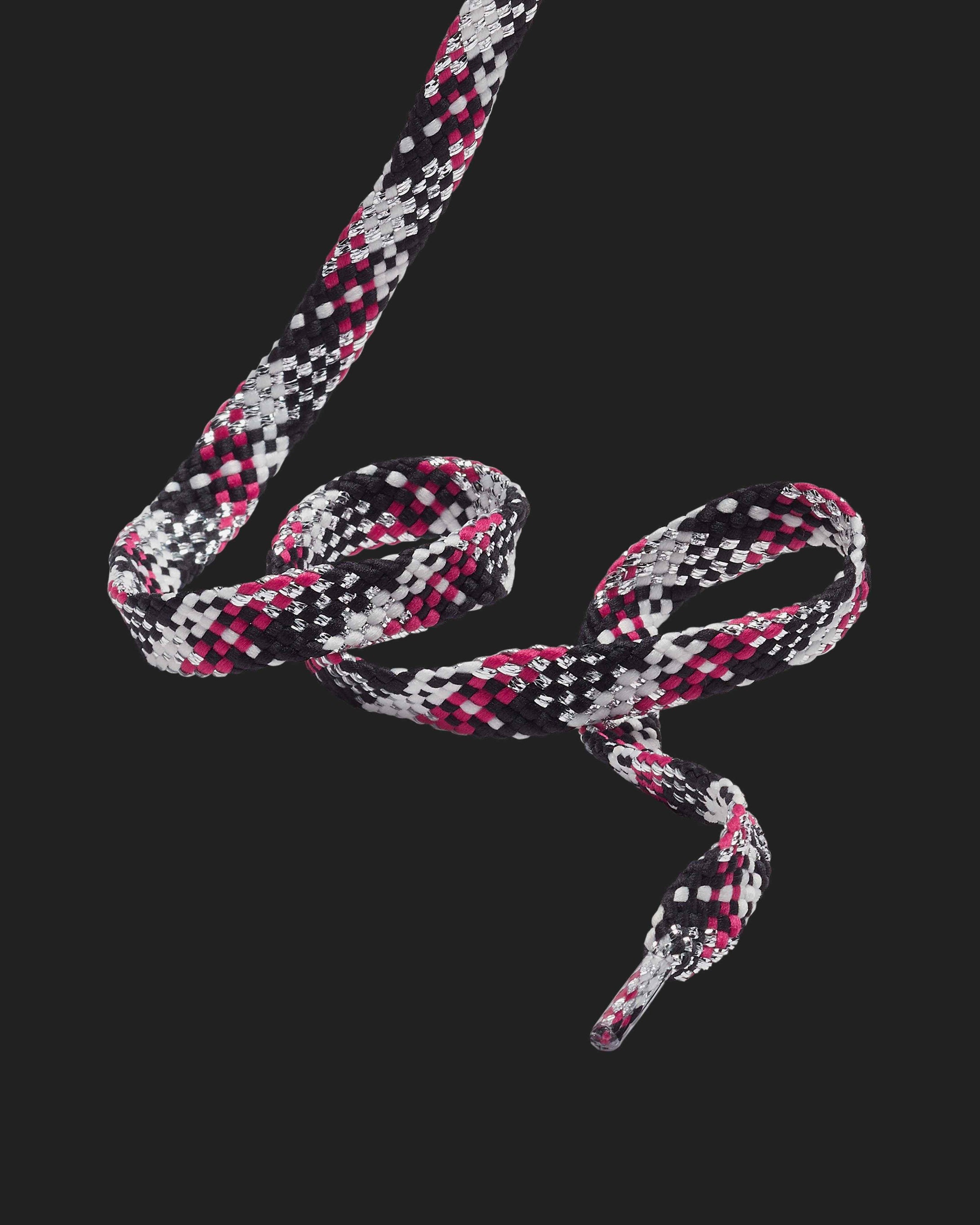 The combination of fuchsia, black, silver and white makes these Multi Fuchsia laces as versatile as they are eye-catching.