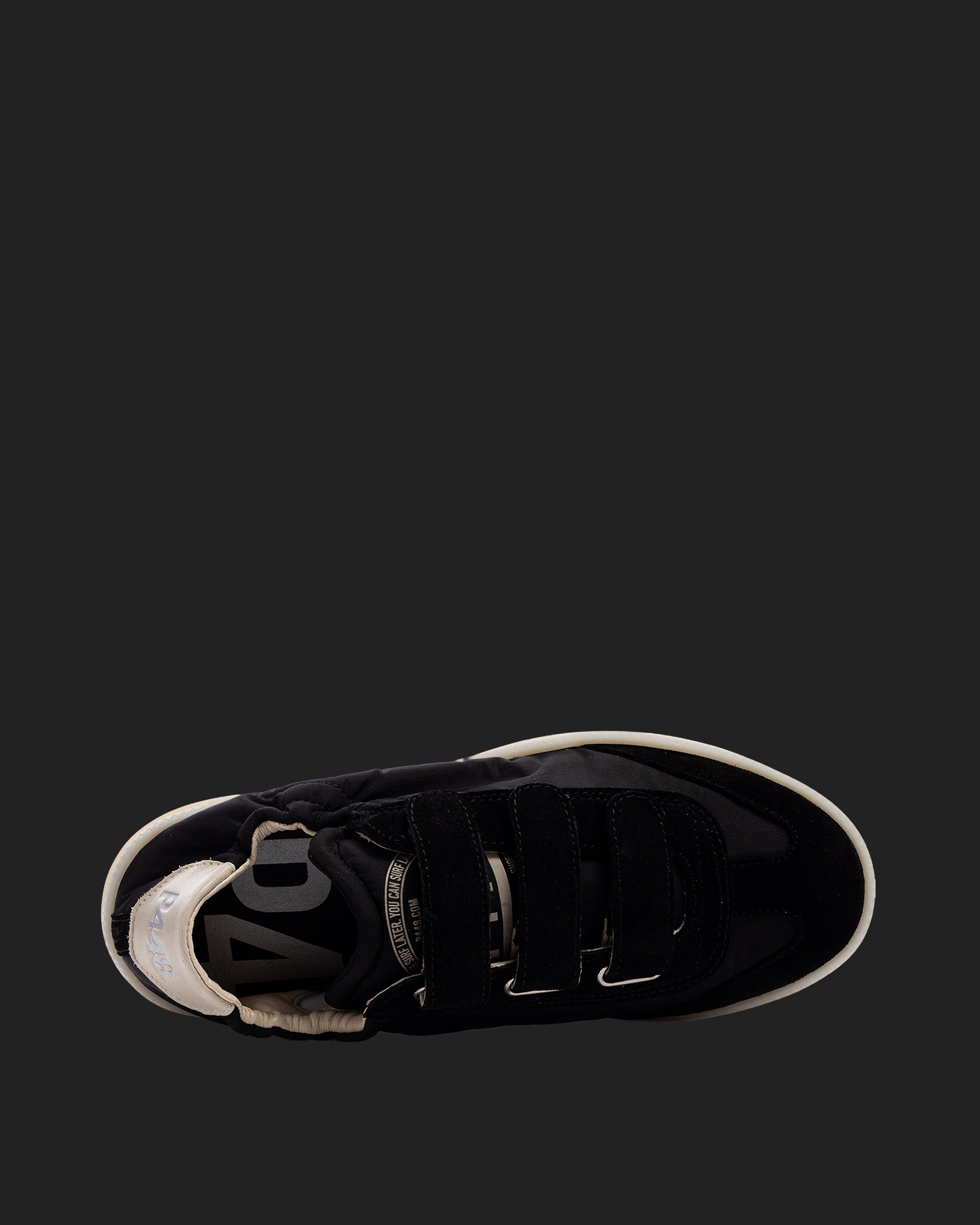 • Black suede hook & loop closure