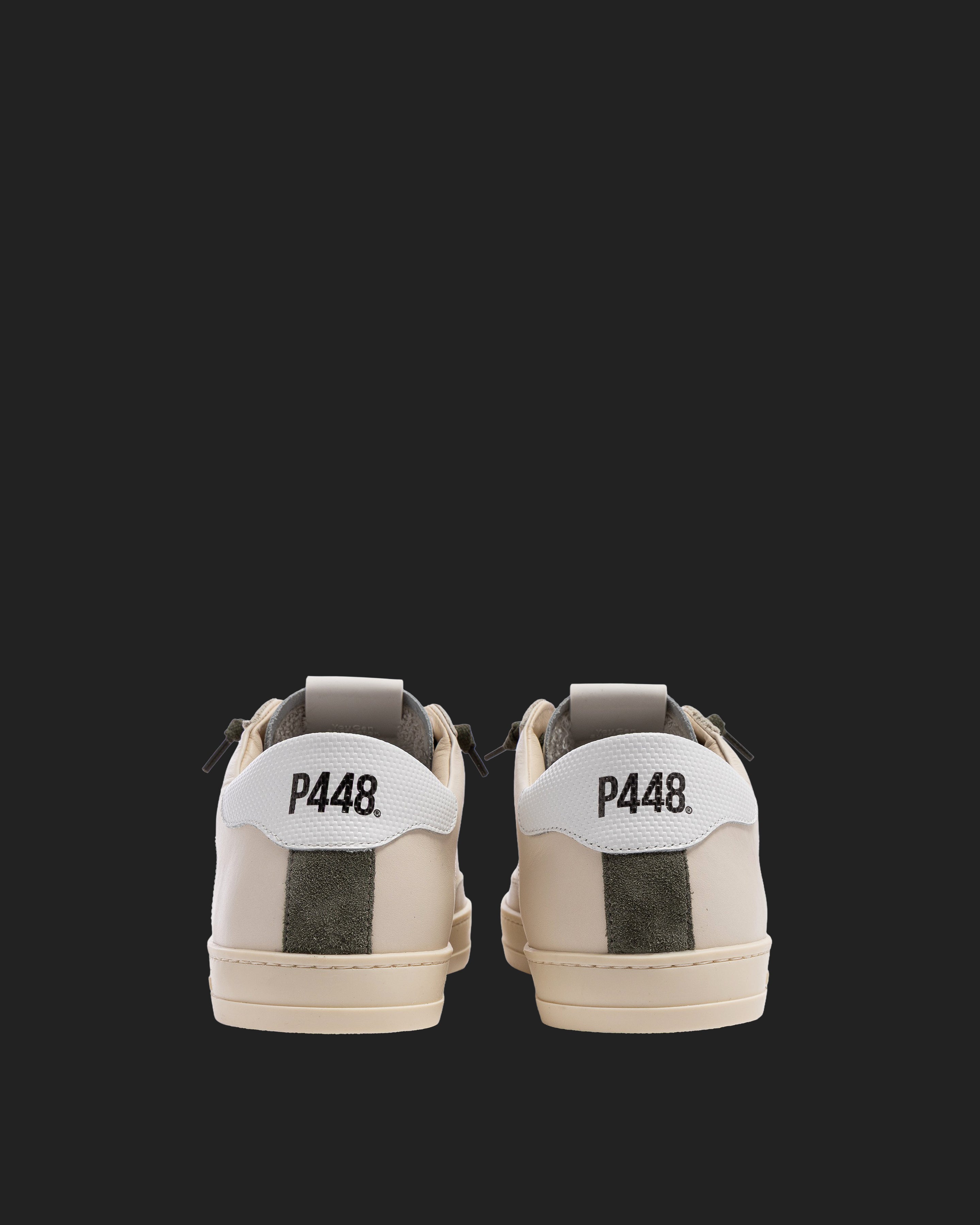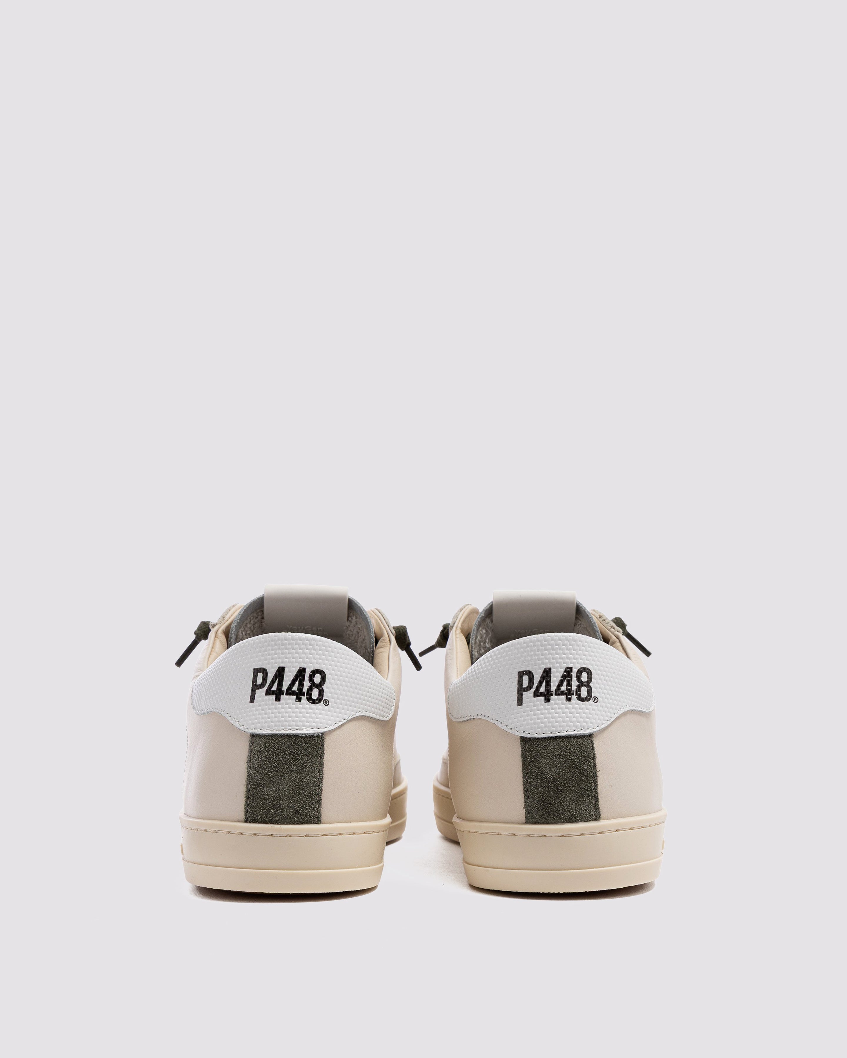 The John Block Cream is wrapped in beige and white leather accented by green cotton laces. Our signature P448 rubber sole and gum tread finish off the look. Swap in the extra pair of neutral laces to keep it simple.