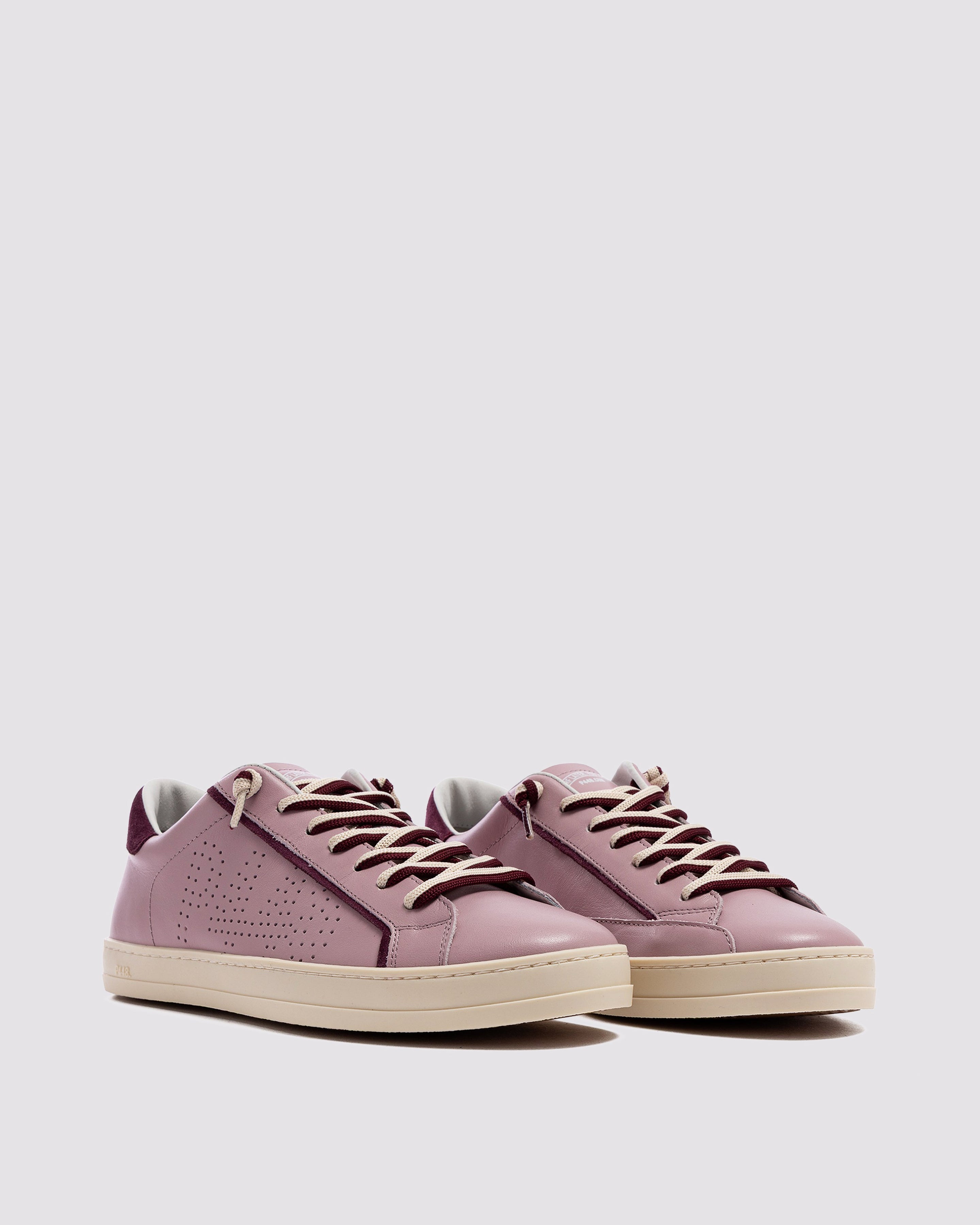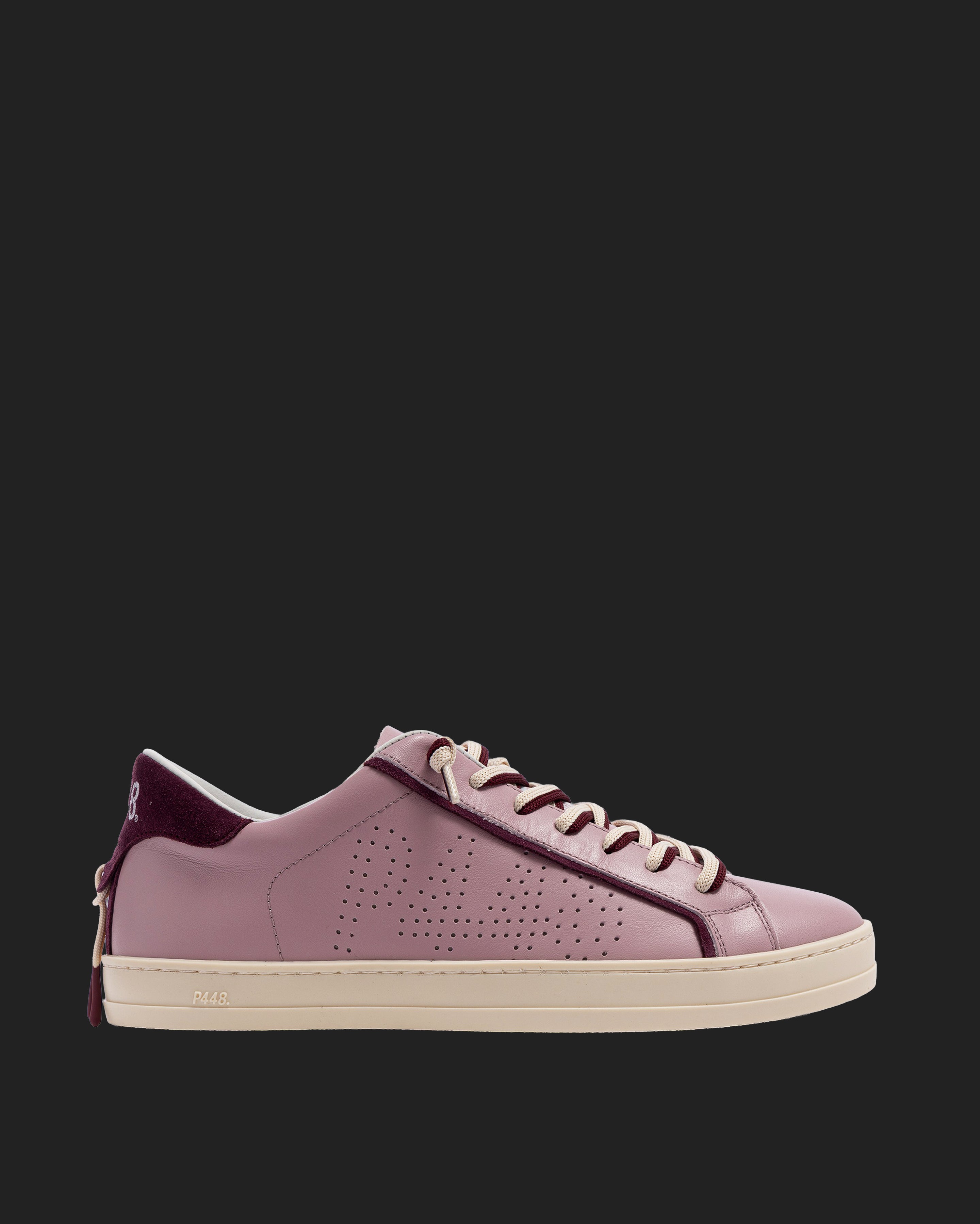 The John Pink Sky is wrapped in pink leather and red suede, complemented by matching burgundy laces with a cream lace charm. Our signature P448 rubber sole and cream tread finish off the look. Swap in the extra pair of cream laces to keep it simple.