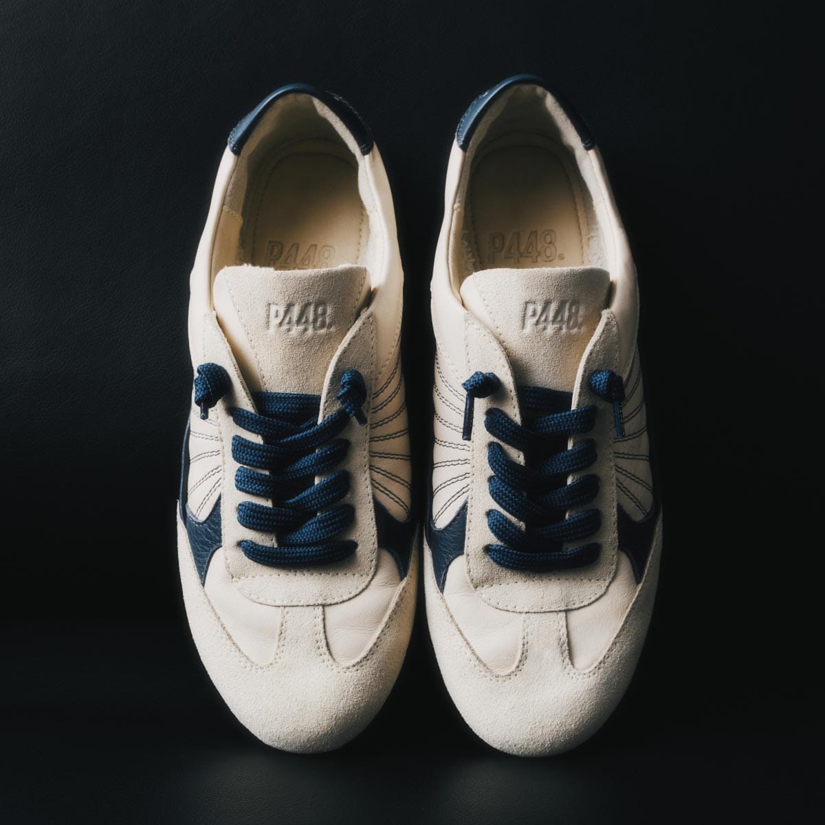 The Lisbon Cream Blue is a P448 sacchetto-designed retro soccer silhouette that uses a handmade process to bring you extra softness, flexibility and comfort.
