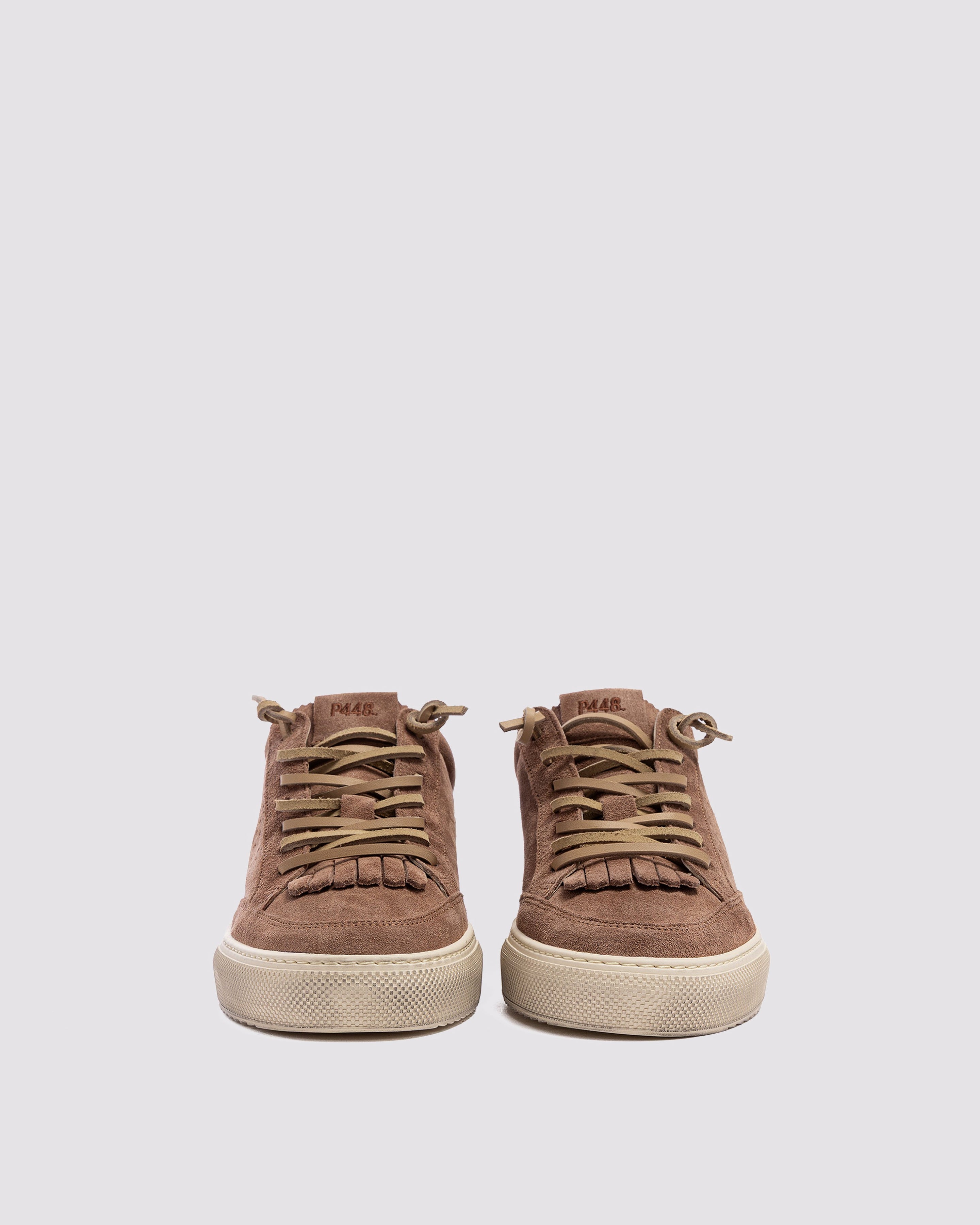 The Soho Terra Desert is wrapped in all-over brown suede with contrast heel stitching and a removable tassel tongue. The cream leather laces, our signature P448 hand-distressed rubber sole and cream tread ground the look. Swap in the extra pair of cream waxed cotton laces to keep it simple.