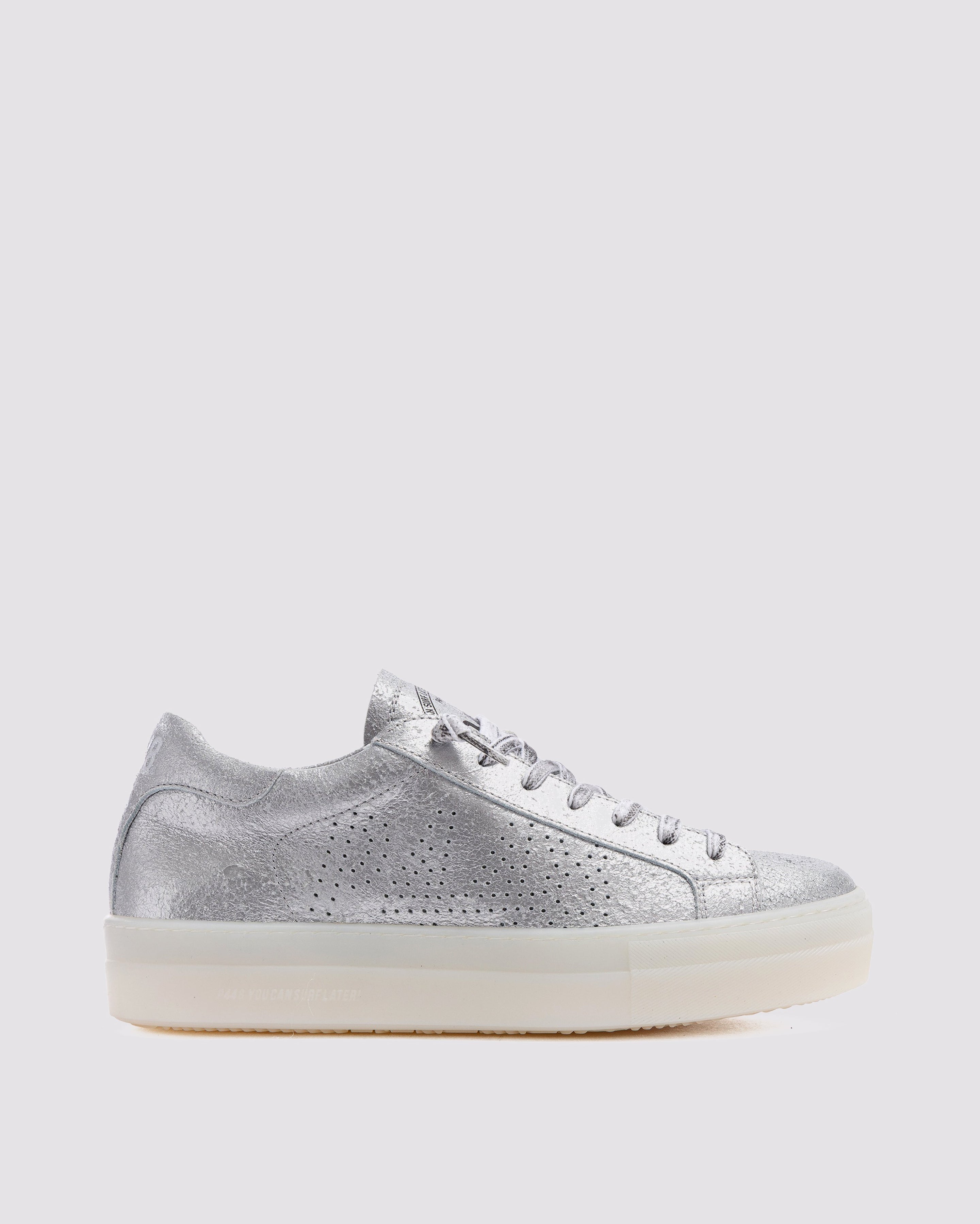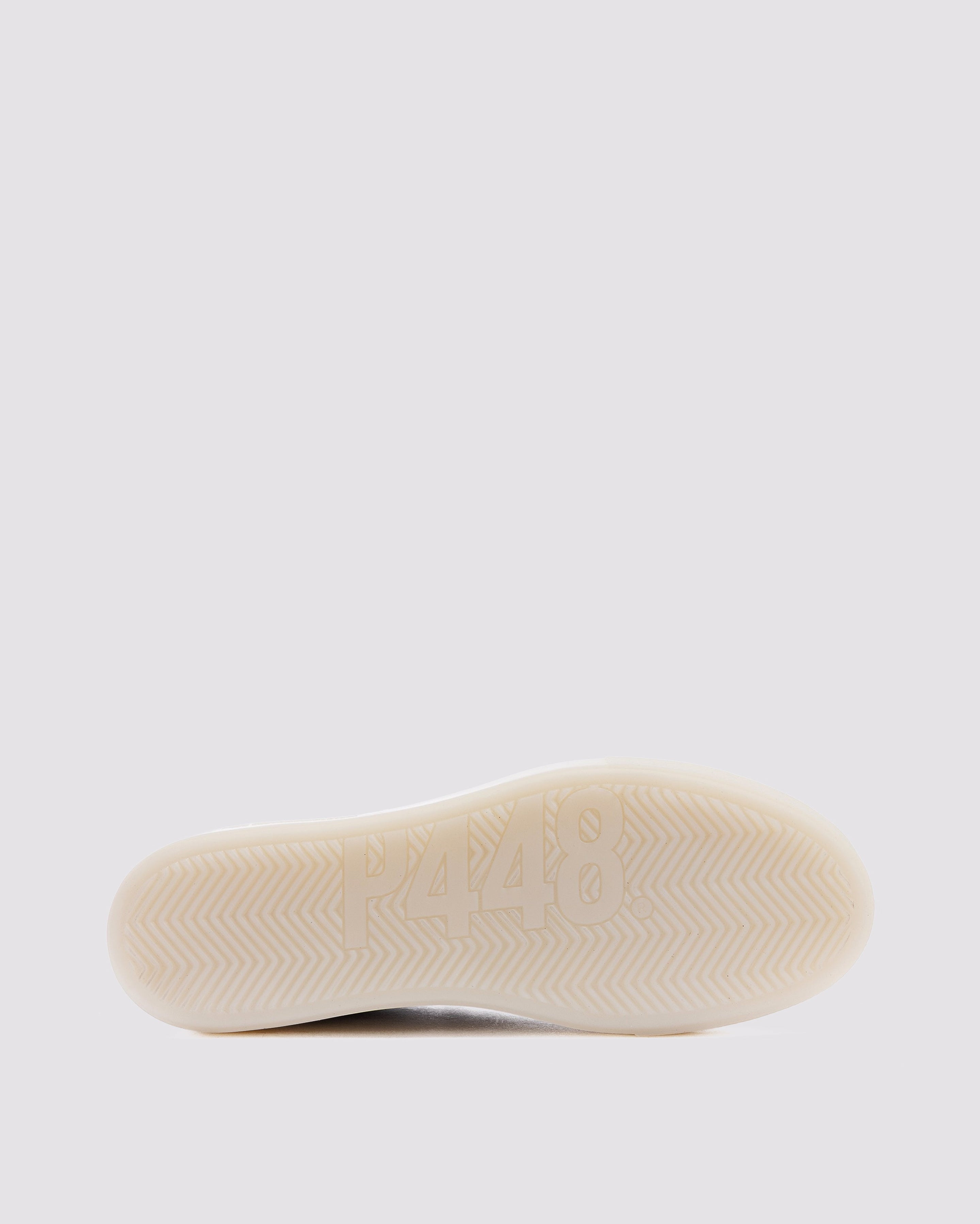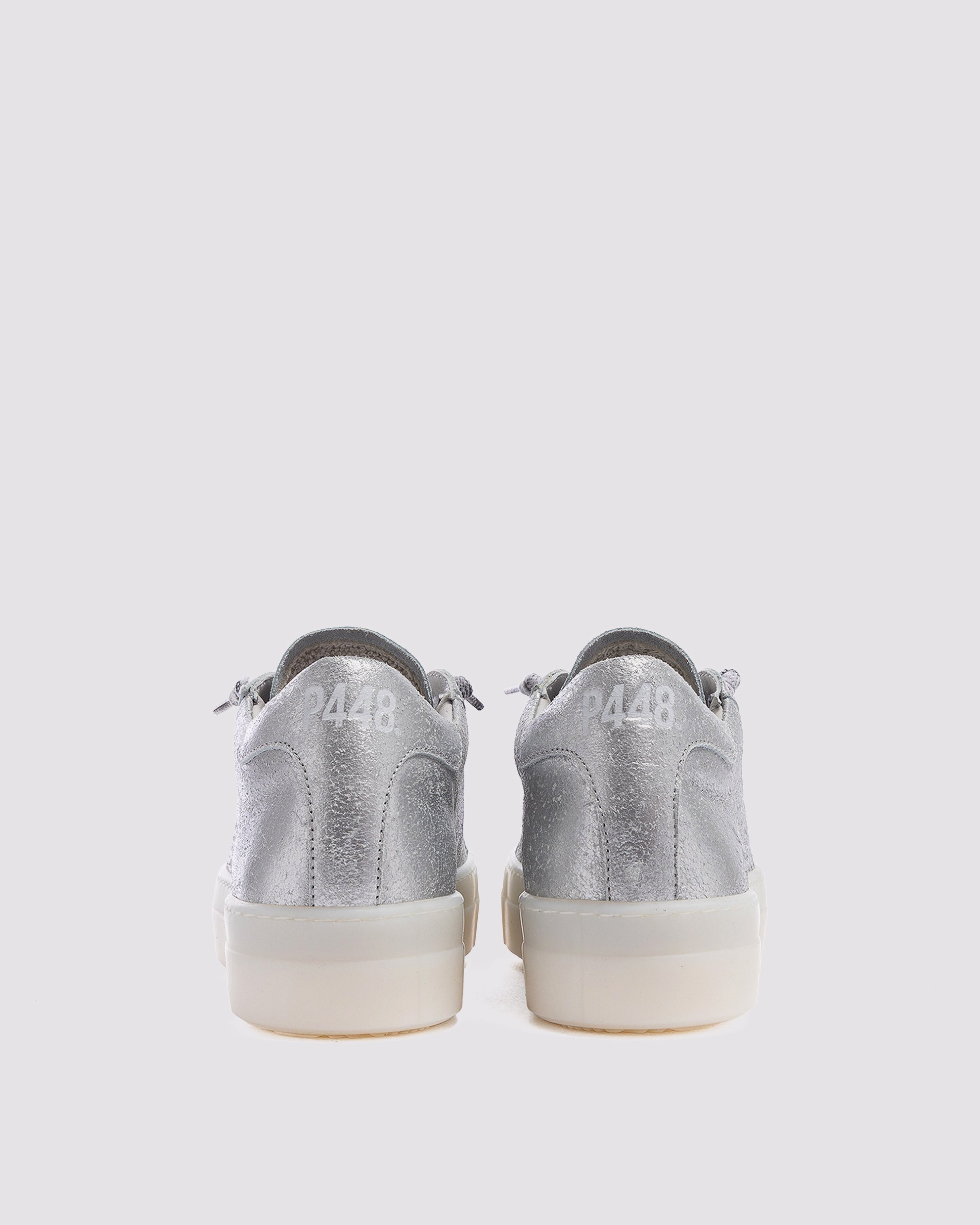• Silver leather upper with perforated P448 logo