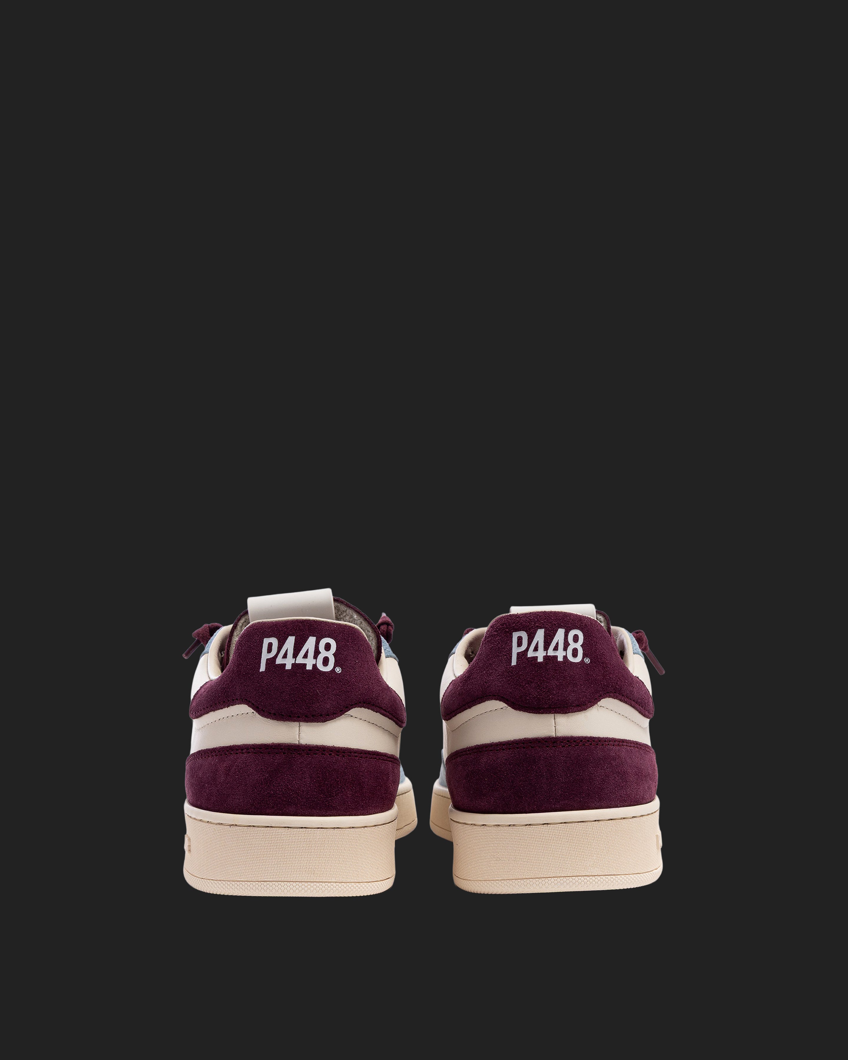 The Vert Sand Sky features a white leather upper with a perforated P448 logo, accented by a burgundy suede tongue,...