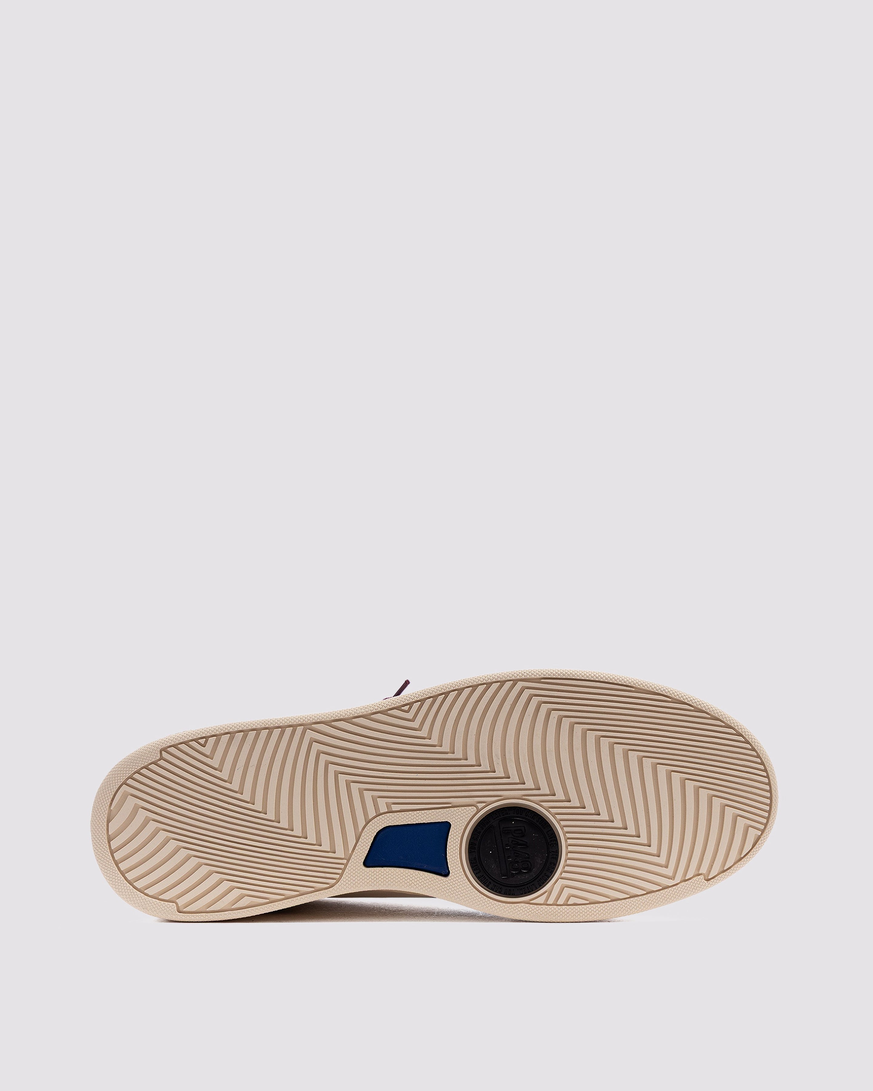 The Vert Sand Sky features a white leather upper with a perforated P448 logo, accented by a burgundy suede tongue, blue corduroy suede trim and toe, and burgundy suede heel tab and detailing. Finished with burgundy cotton laces, or swap in the extra pair of white cotton laces for a cleaner look. Our signature P448 rubber sole is crafted with skaters in mind, featuring a herringbone tread and pivot point for extra grip and ultimate comfort.